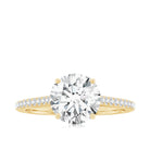 Since sparkles are never enough, this Moissanite Solitaire Ring is handcrafted to shine throughout! Standing atop it is the Centerpiece of Sparkling Single Stone of Round Cut Moissanite that is secured by a Basket Setting. For enhanced brilliance, this Moissanite Gold Ring has been adorned by side-stones of Round Cut Moissanite.