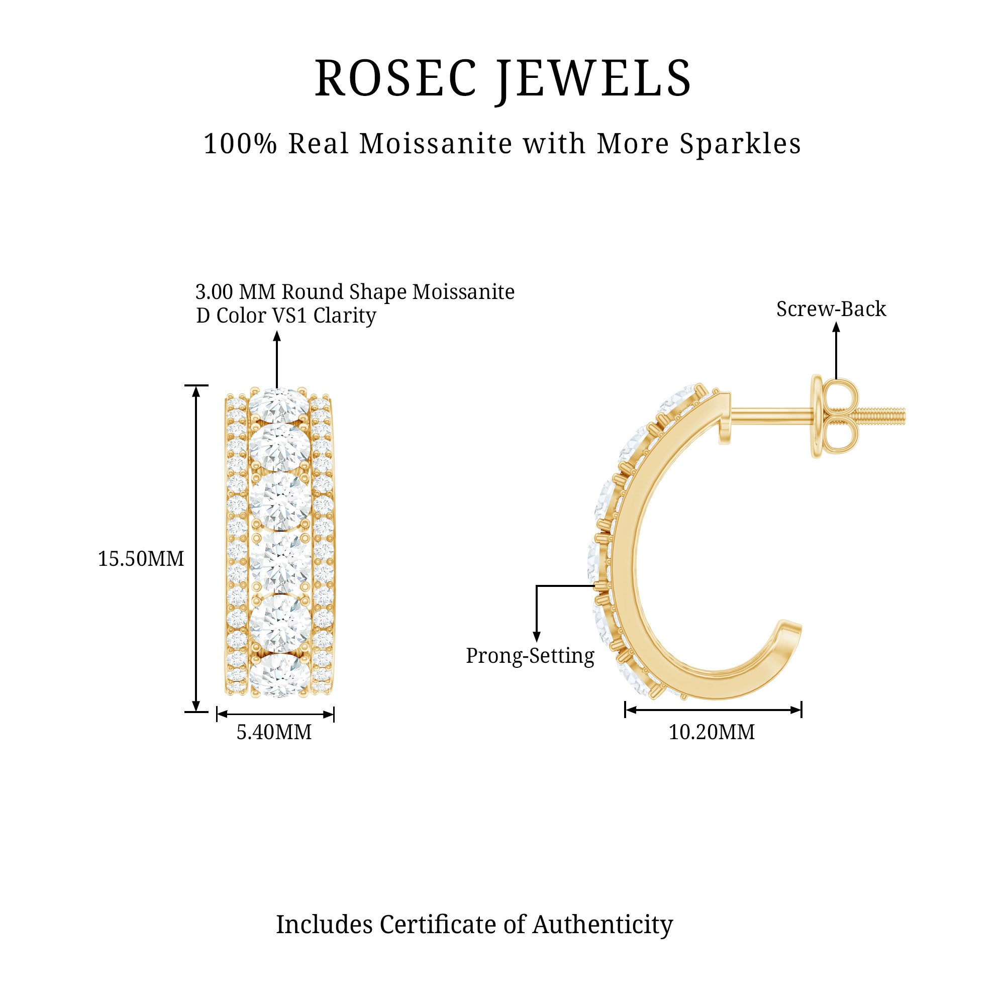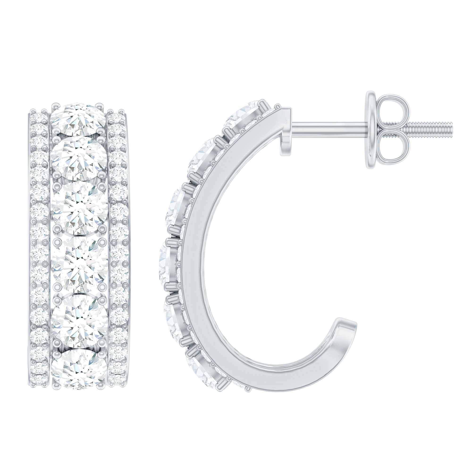 Certified Moissanite Round Designer J Hoop Earrings