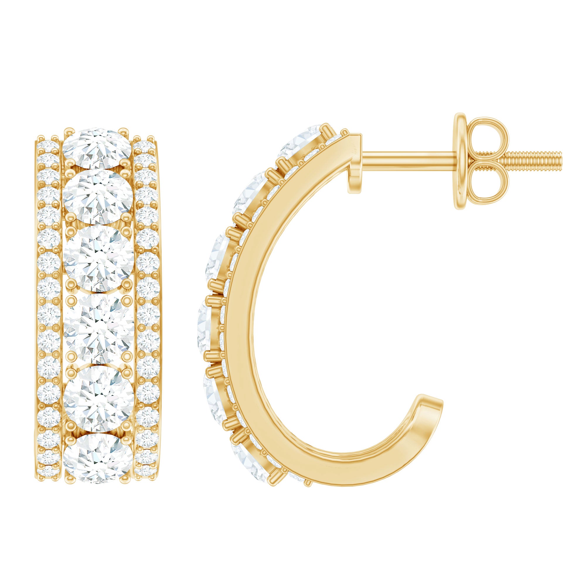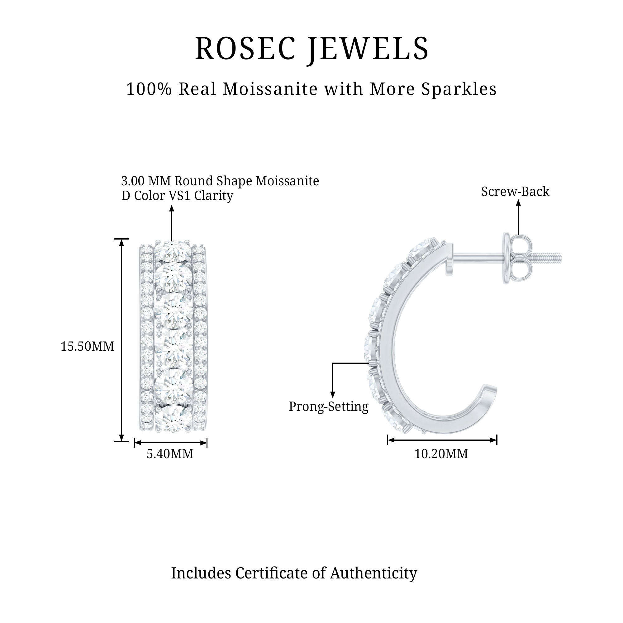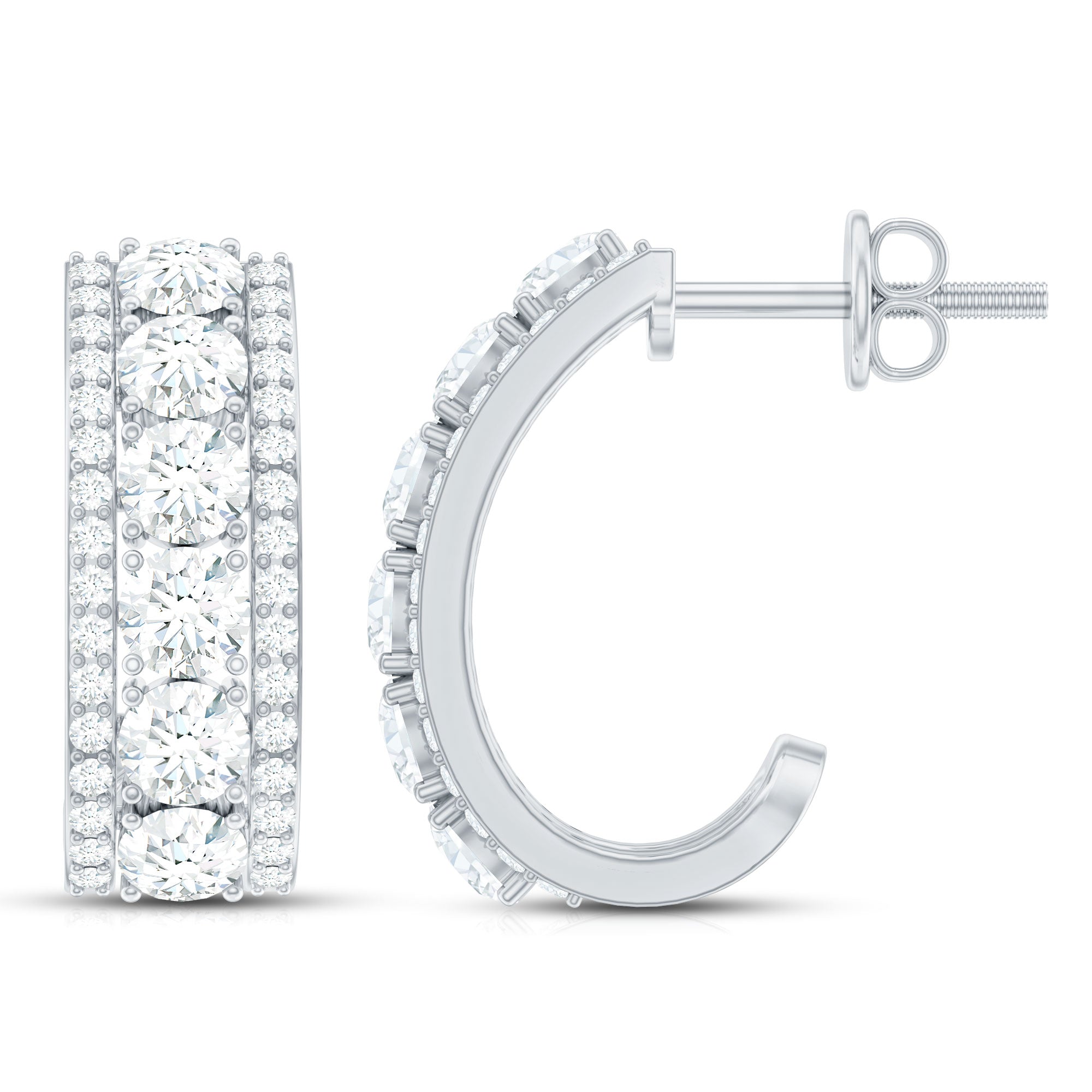 Elevate your elegance on your special day with these exquisite J Hoop Bridal Earrings adorned with dazzling Round Cut Moissanite, delicately placed in a prong setting. The sophistication of these earrings is further enhanced by their convenient Screw Back design, ensuring a secure and comfortable fit. With these mesmerizing Moissanite J Hoop Earrings, your glamour quotient is sure to soar, allowing you to shine brightly on your big day.