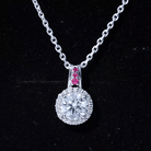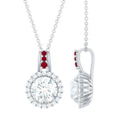 Certified Moissanite Ruby Halo Pendant Necklace with Silver Chain