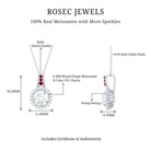 This Moissanite Pendant Necklace is a true epitome of radiance and beauty, which perfectly suits the outfit for your special occasion. The pendant crafted with 14K White Gold Plated Silver features an 8 MM Round Shape Moissanite secured in Prong Setting encircled by a Halo of Moissanite, and topped with a trio of natural rubies. This Halo Pendant is accentuated with a hidden bail and dangles with a sturdy cable chain, which makes it perfectly sit on the neckline. This Drop Pendant Necklace will be delivered to you in premium quality packaging with a certificate of authenticity.