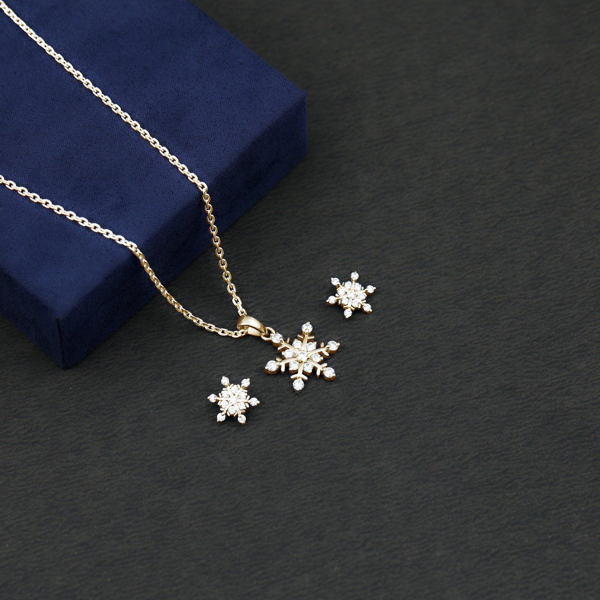 Certified Moissanite Snowflake Jewelry Set For Christmas
