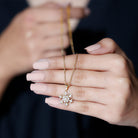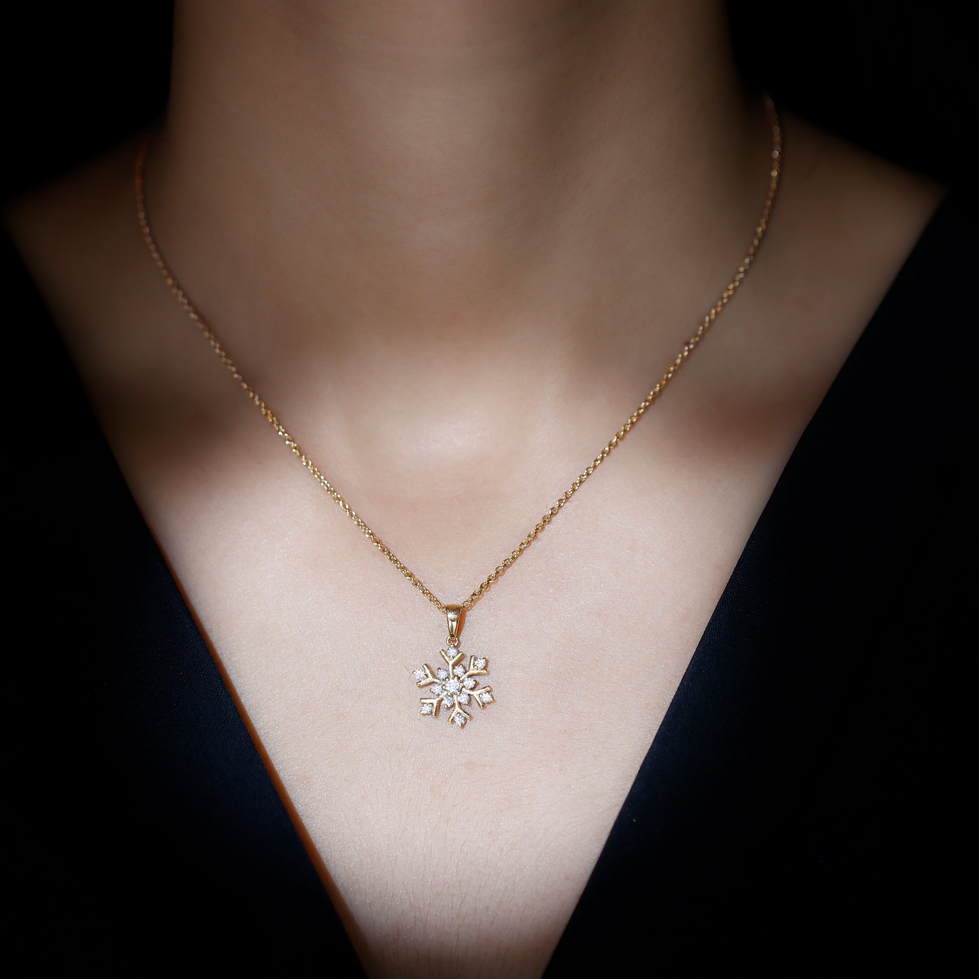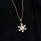 Winter’s delicate beauty is captured in this intricately designed Snowflake Necklace, a piece that brings elegance and charm to any outfit. Each branch of the snowflake is adorned with sparkling round cut moissanite stones, set carefully to mimic the natural geometry of a snowflake. The result is a luminous Snowflake Pendant that catches light beautifully, adding subtle sparkle to both casual and formal looks. The Moissanite Pendant Necklace hangs gracefully from a fine chain, making it lightweight, comfortable, and perfect for everyday wear or special occasions. Its design symbolizes uniqueness and purity, serving as a wearable reminder that every wearer is one-of-a-kind. The precise craftsmanship highlights the intricate details of the snowflake, creating a timeless piece that blends nature-inspired beauty with modern elegance. Securely finished with a polished bail, the Winter Necklace stays in place while adding a refined shimmer to your neckline. Handcrafted with care, it provides lasting quality and brilliance without compromising on style or ethical standards.