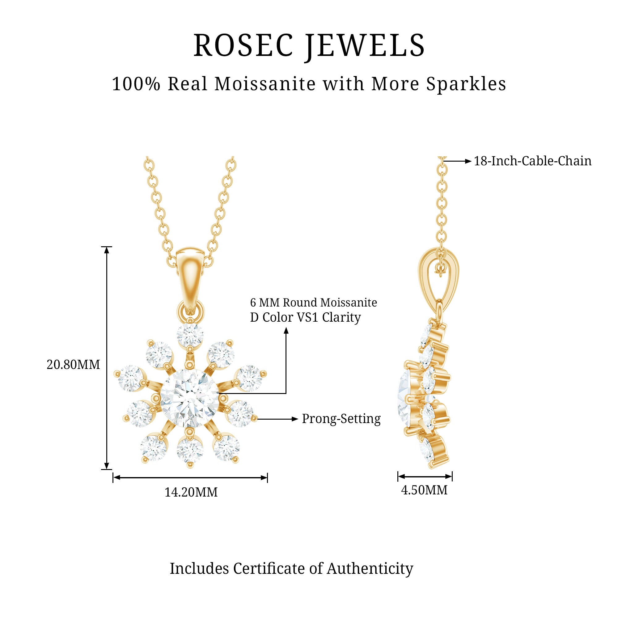 Certified Moissanite Snowflake Pendant Necklace with Silver Chain