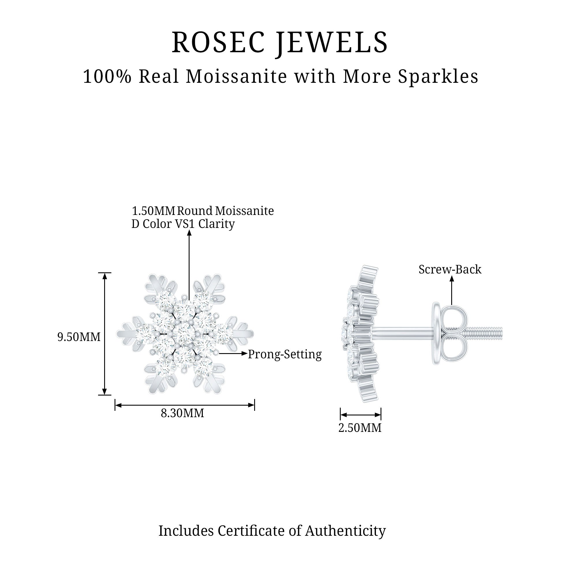 Certified Moissanite Snowflake Stud Earrings
