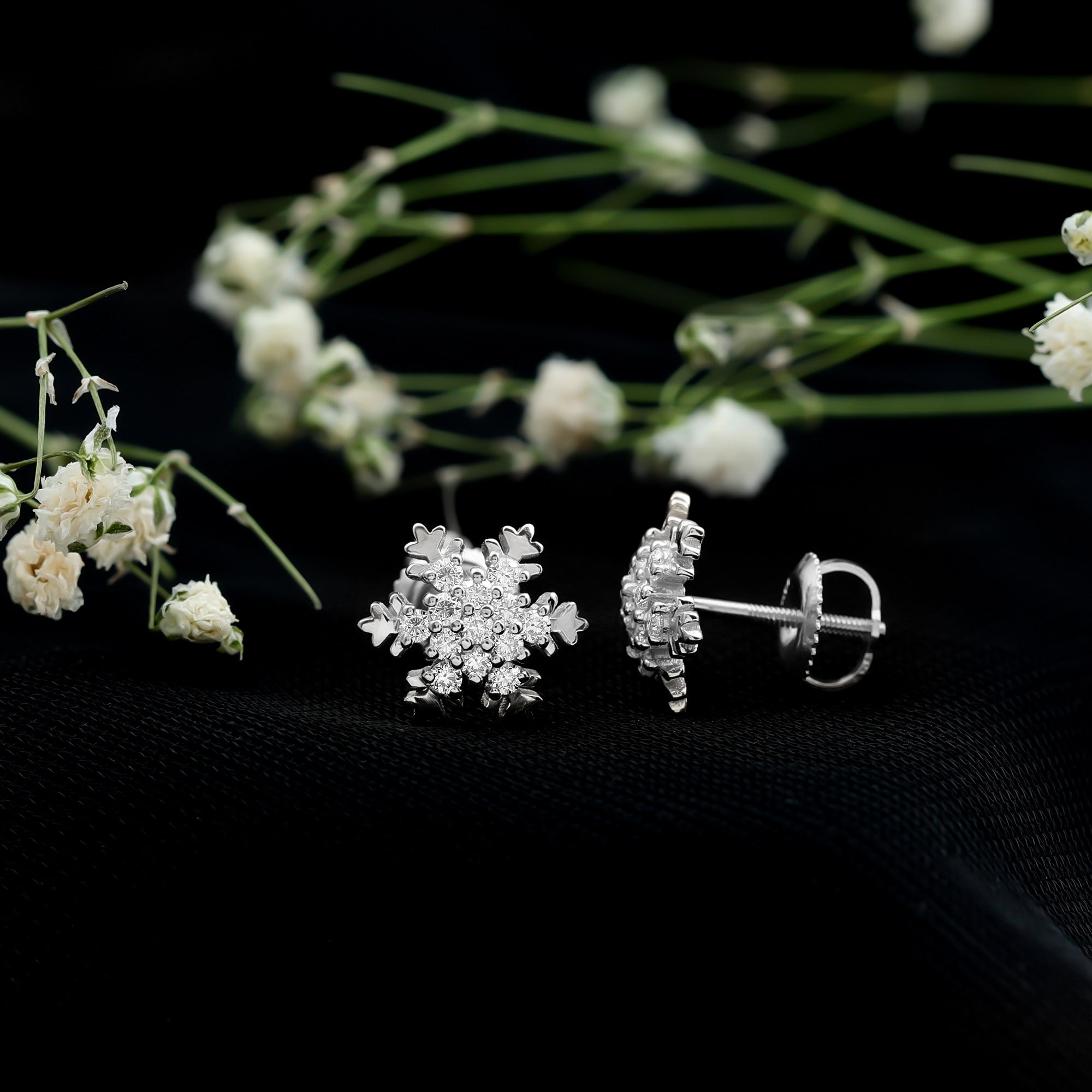 Capture the magic of winter with certified Moissanite snowflake stud earrings. Sparkling beauty that adds a touch of enchantment to your style.