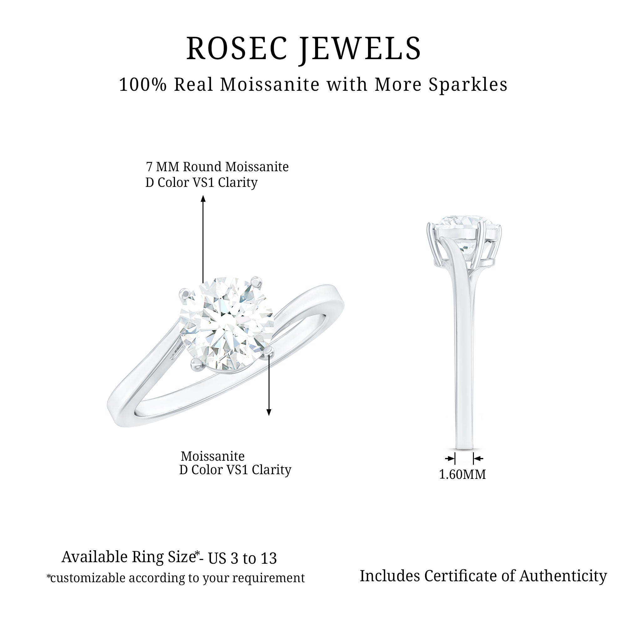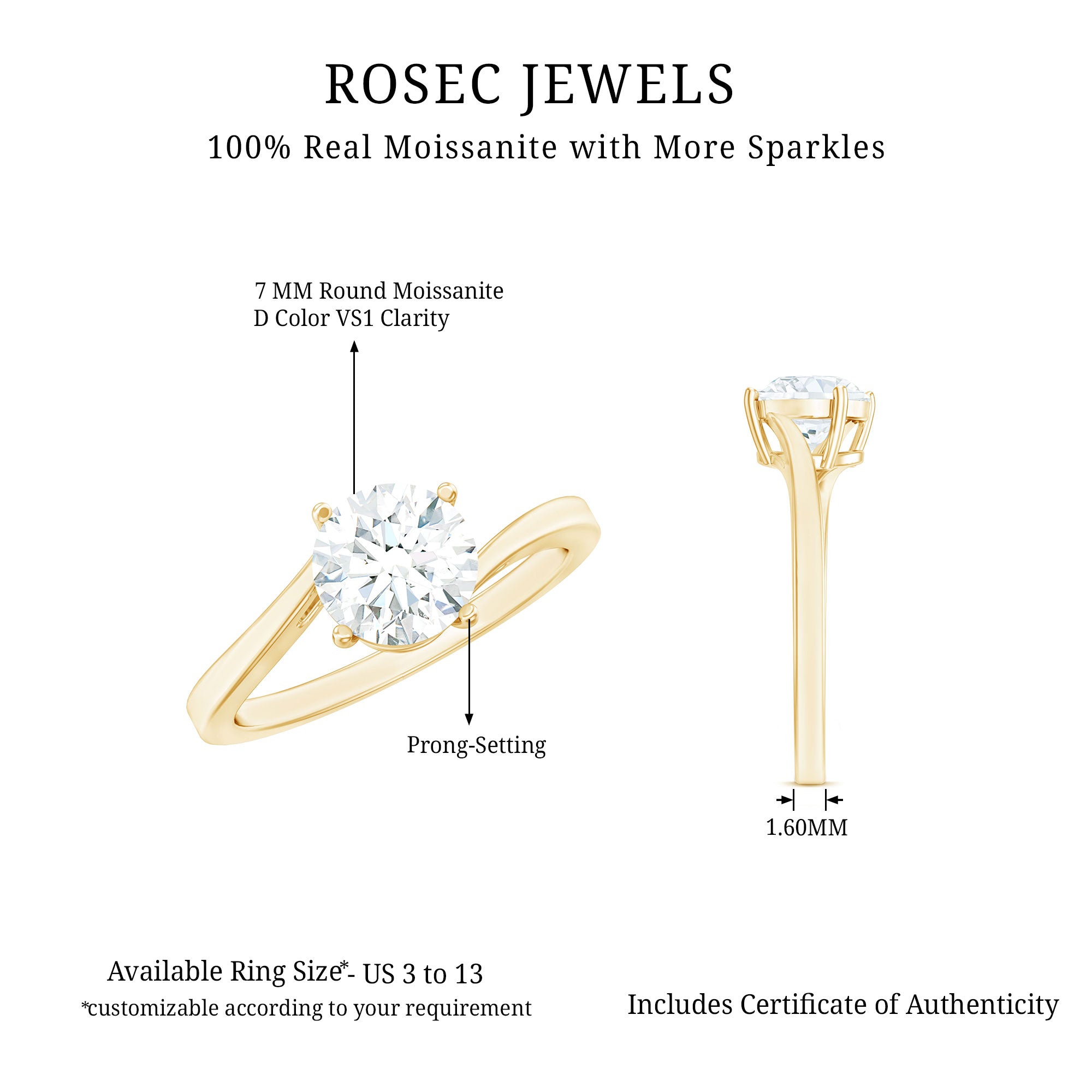 Win her heart with this gorgeous Round Moissanite Engagement Ring, a true emblem of enduring love and commitment. Crafted with a blend of classic elegance and contemporary style, this Bypass Engagement Ring is a breathtaking option for the one who means the world to you. At its heart is a stunning 7 MM round brilliant cut moissanite, securely held in a sleek prong setting. It radiates simplicity and sophistication. The prong setting not only gives it a modern vibe but also safeguards the stone, making this 1 Carat Moissanite Ring ideal for daily wear. The bypass design introduces movement and charm, allowing this Moissanite Solitaire Ring to shine while remaining effortlessly timeless. Meticulously crafted, it comes in various high-quality metal purity options and colors, letting you customize it to reflect your personal style. It is also available in US standard sizes from 3 to 13, ensuring a perfect fit for every hand. Whether it is for a proposal, an anniversary, or a special moment just for the two of you, this Solitaire Engagement Ring is a classic piece she will cherish forever.