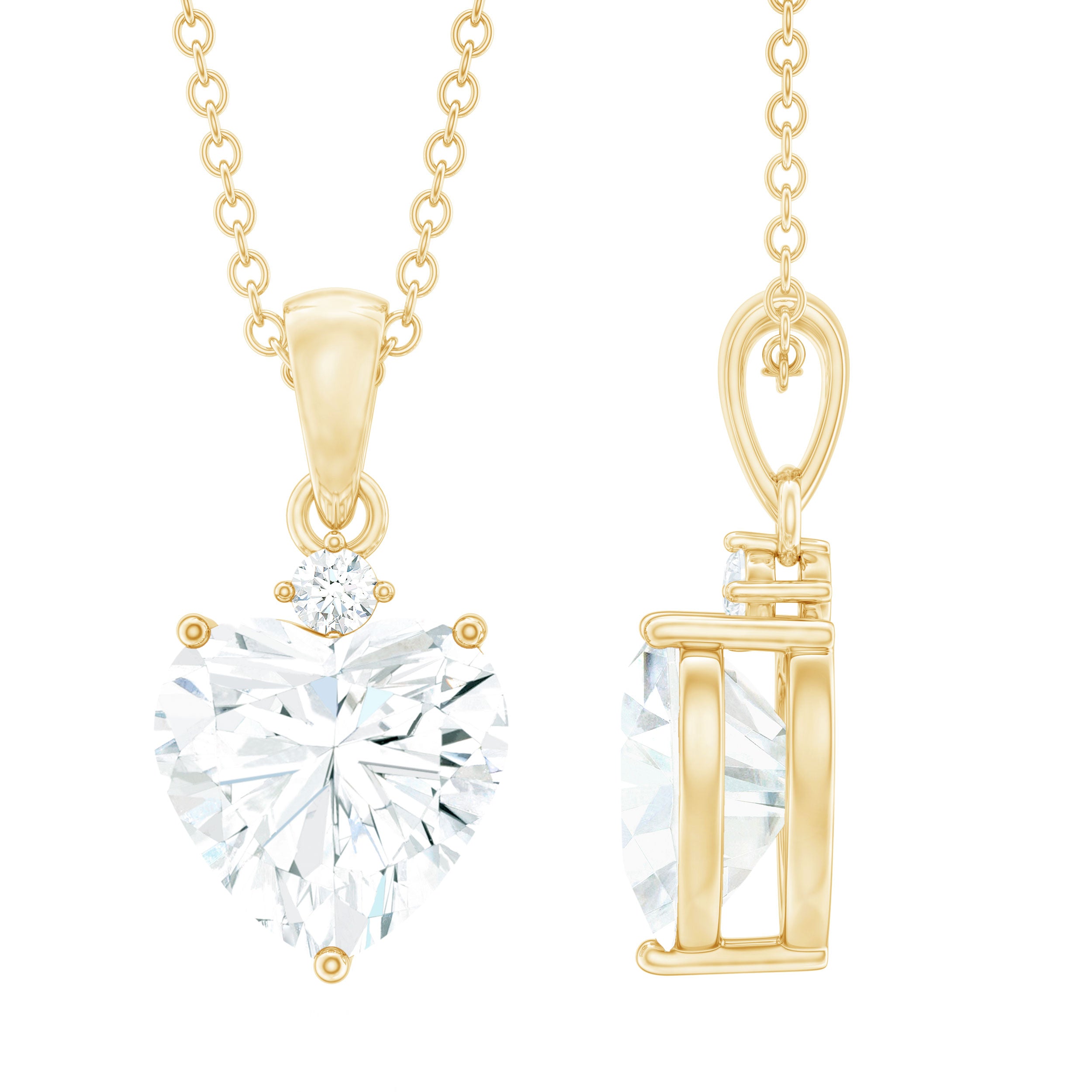 Perfect to wear on any occasion, this Heart Pendant Necklace is embellished with a Heart Shape Moissanite secured in 3 Prong Setting while a dainty Round Moissanite is studded on the top of it. The Moissanite Pendant will complement your casual or dressy attire with ease. Give our fantastic Heart Pendant Necklace to your love as a birthday present to make her heart flutter.