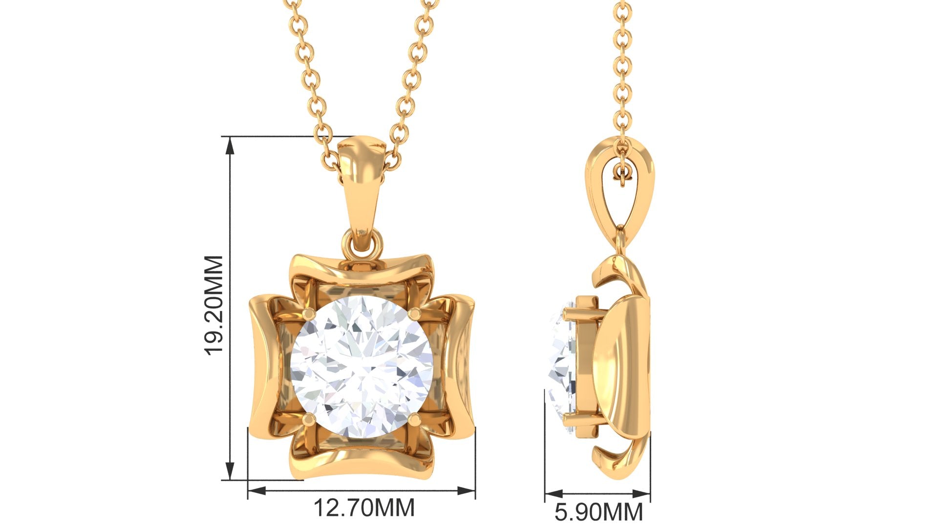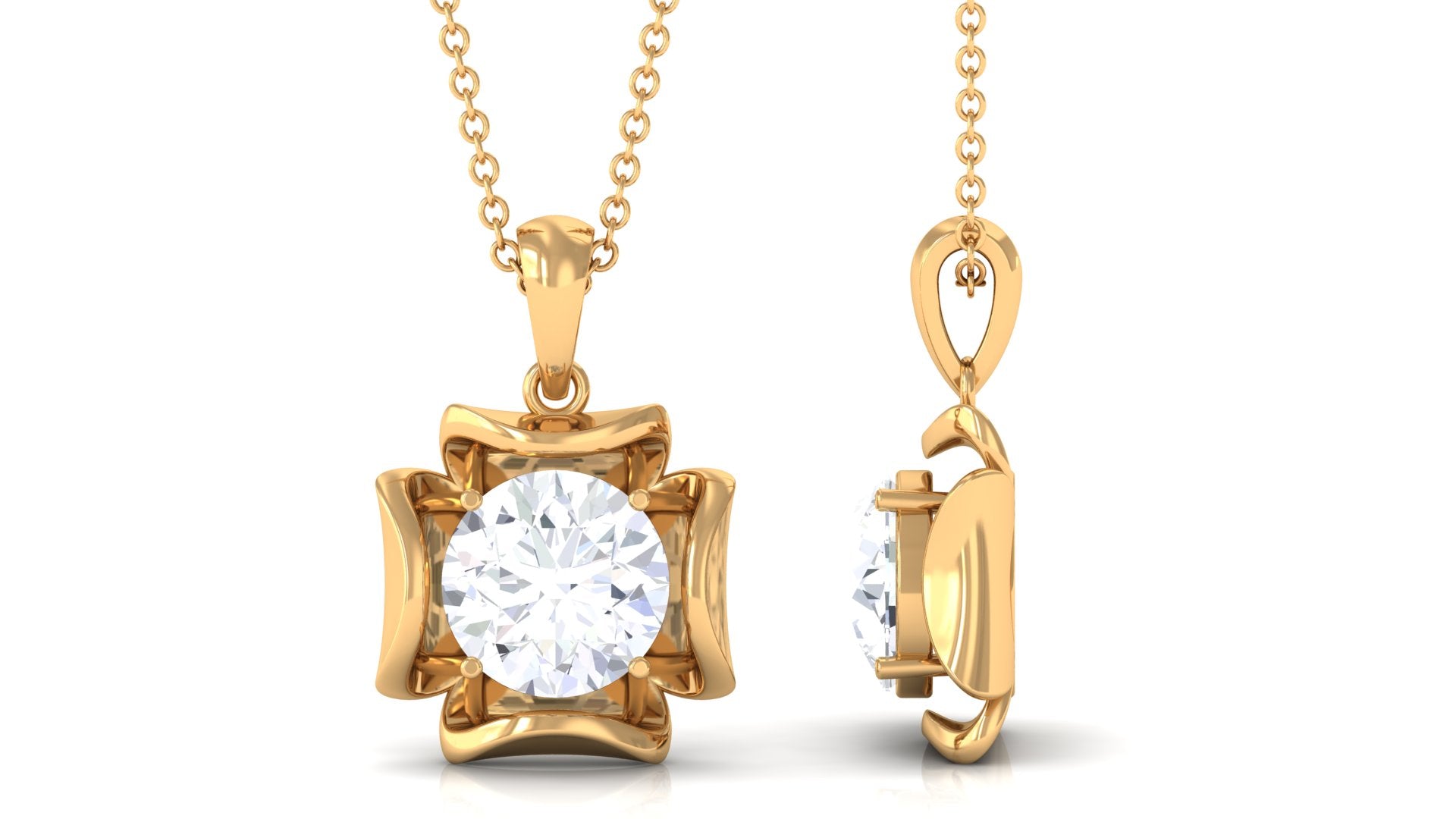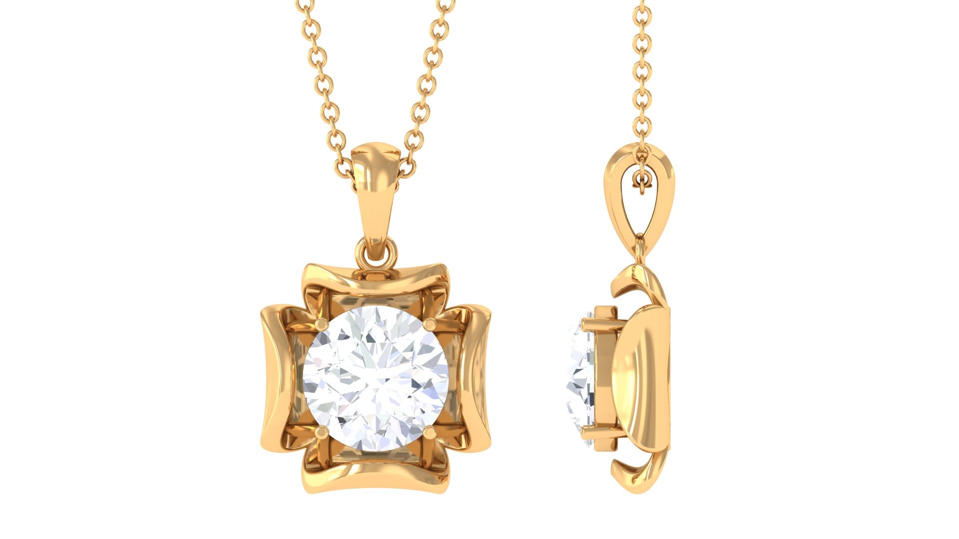 This Vintage Inspired Solitaire Pendant Necklace embellished with 8 MM Round Moissanite set in a prong setting. This glowing, lustrous Solitaire Pendant looks perfect when dressed up or down.