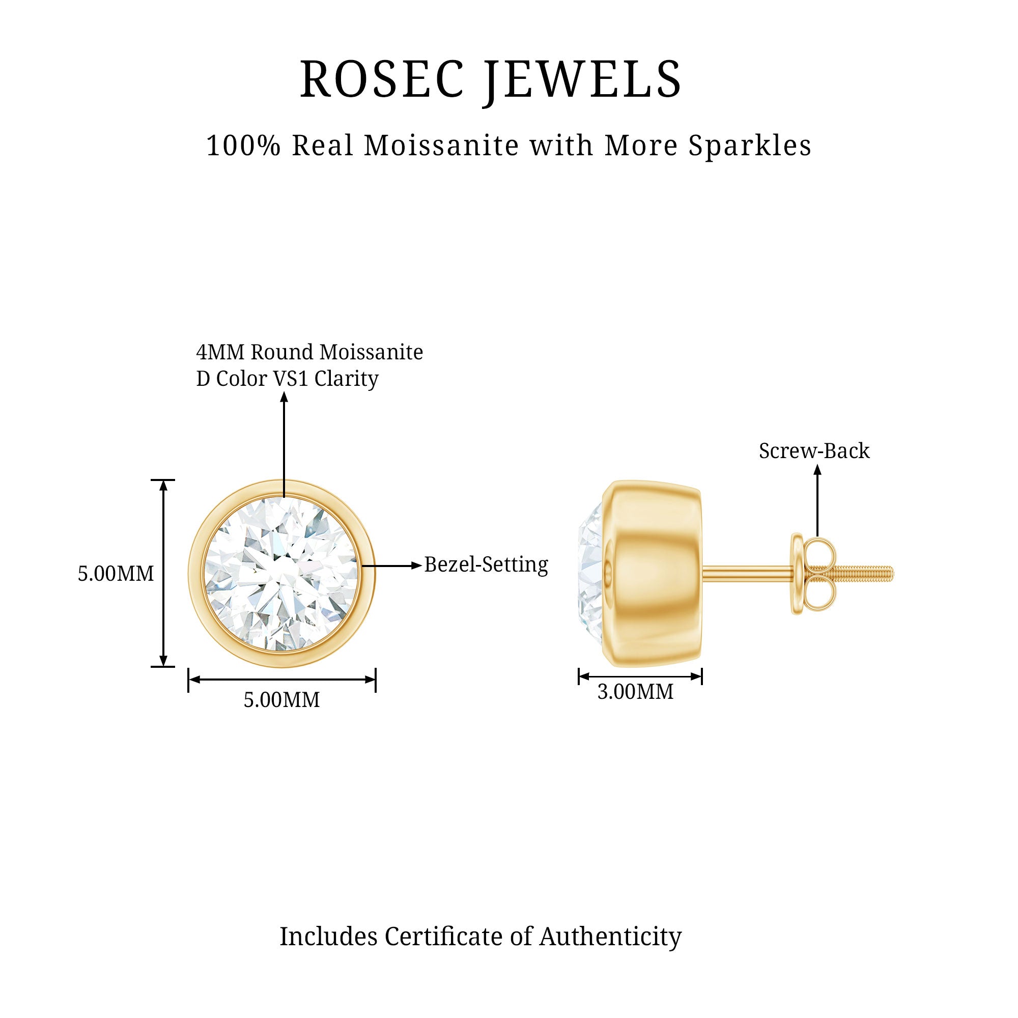 Certified Moissanite Solitaire Stud Earrings in Bezel Setting