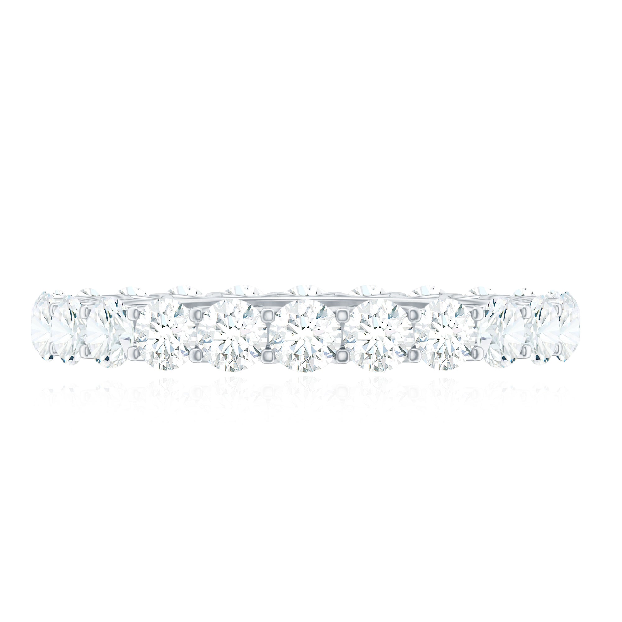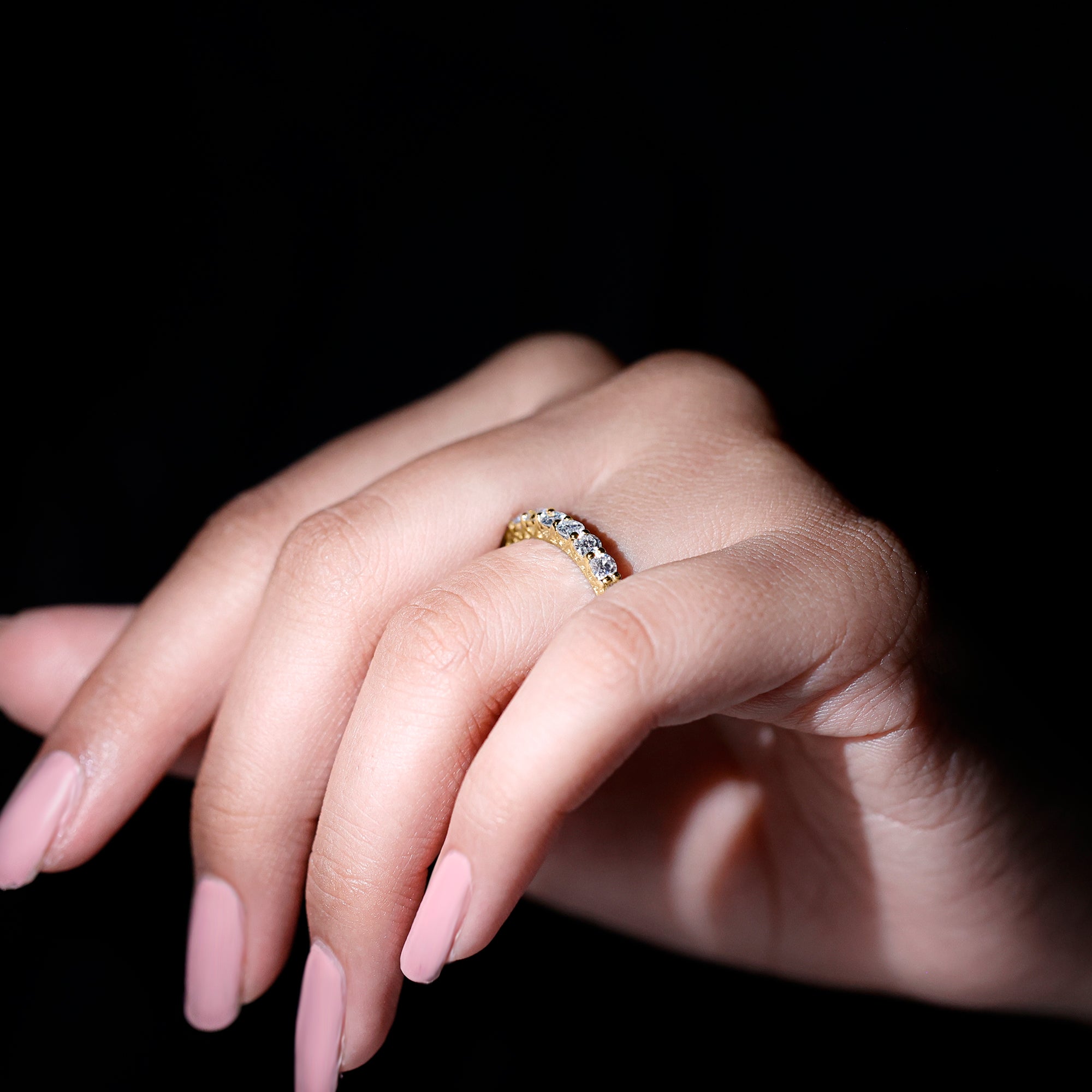 Check out this Moissanite Stackable Ring that redefines everlasting love with a stylish, modern twist. This Full Eternity Ring for Women is the perfect homage to eternity, made for those who appreciate a little sparkle. It features D-VS1 Quality Round Shape Moissanite set in a Shared Prong Setting, with each stone shining with incredible brilliance and clarity, enveloping your finger in a never-ending band of light. This Moissanite Wedding Band is a radiant reminder of every shared smile, every important moment, and all the heartbeats in between. Designed to attract attention and spark conversations, this Moissanite Eternity Band comes in a luxurious jewelry box, making it a fantastic gift, proposal ring, or a special treat for yourself. Whether you want daily elegance or anniversary sparkle, this Wedding Anniversary Ring fits perfectly into your story and style. Available in US sizes 3 to 13, so every woman can find her perfect fit. Delicate yet breathtaking, sophisticated yet vibrant, this Eternity Wedding Ring is crafted to shine just like you.