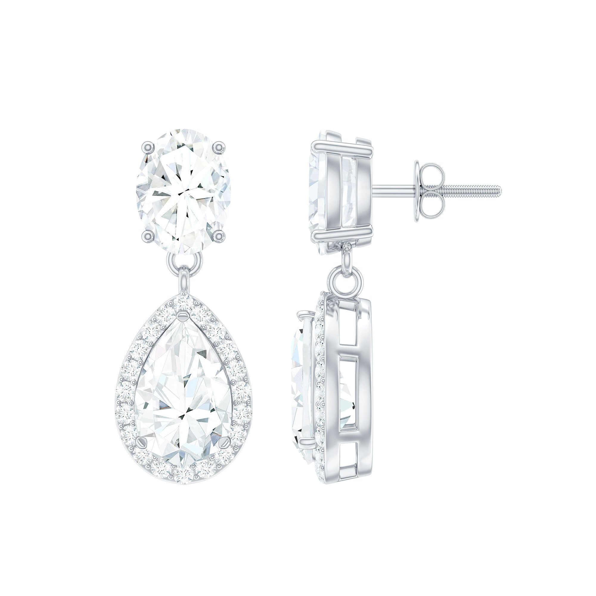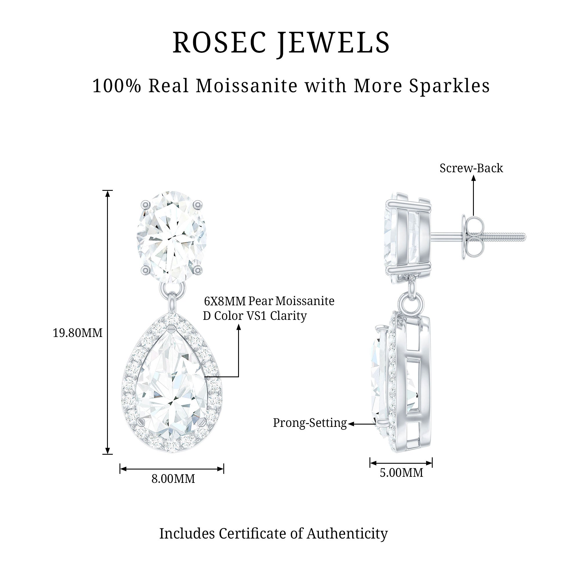 Embrace your style statement with these Dangle Earrings designed to elevate your look. Adorned with Moissanite exudes a dazzling touch, exquisitely set in prong setting. Let the sparkling hue of these Moissanite Earrings upgrade all your casual and formal looks. Comfortably secure with Screw-Back Closures that ensure a snug fit and keep each earring safe in the earlobe. Celebrate a special occasion by gifting these Drop Earrings to someone close to your heart.