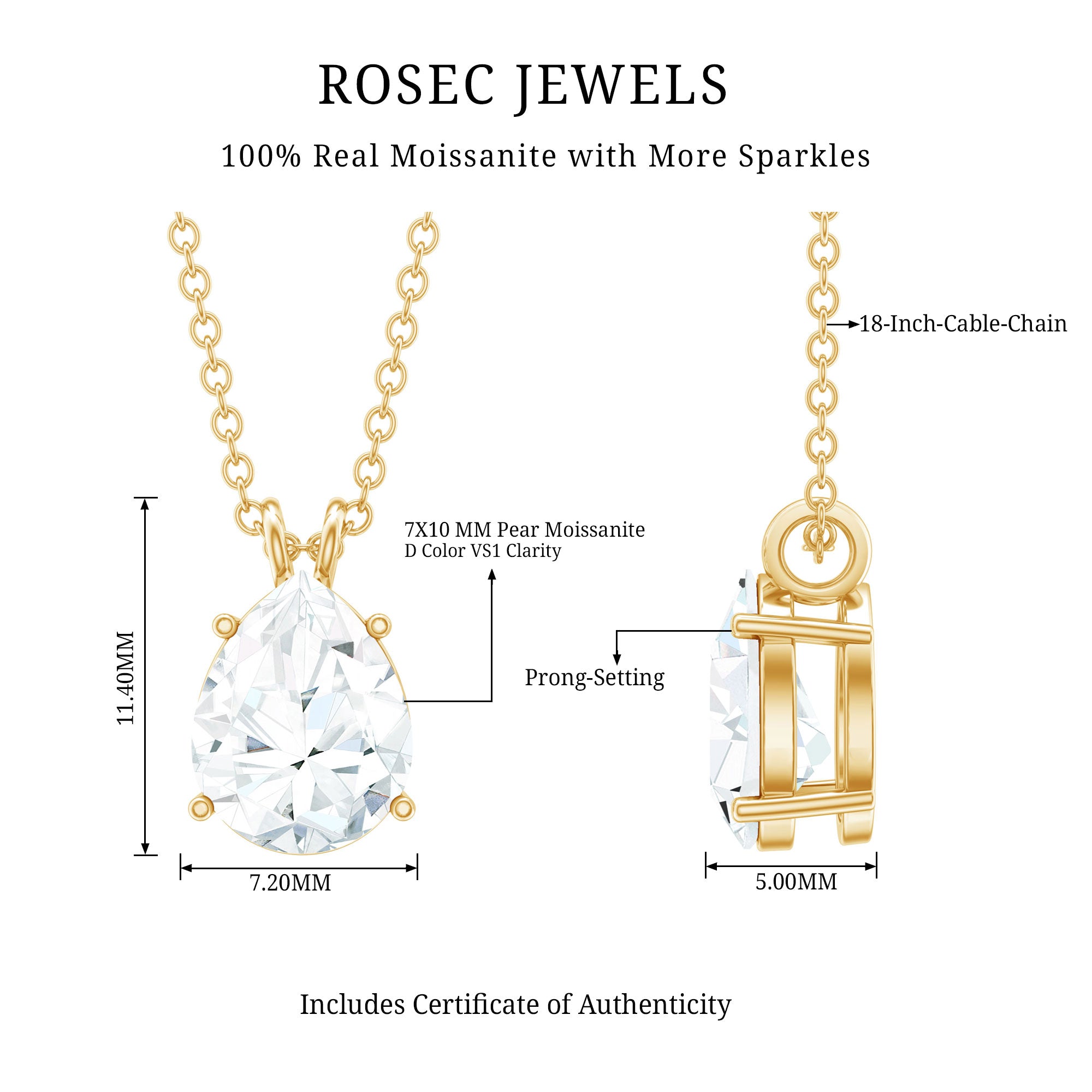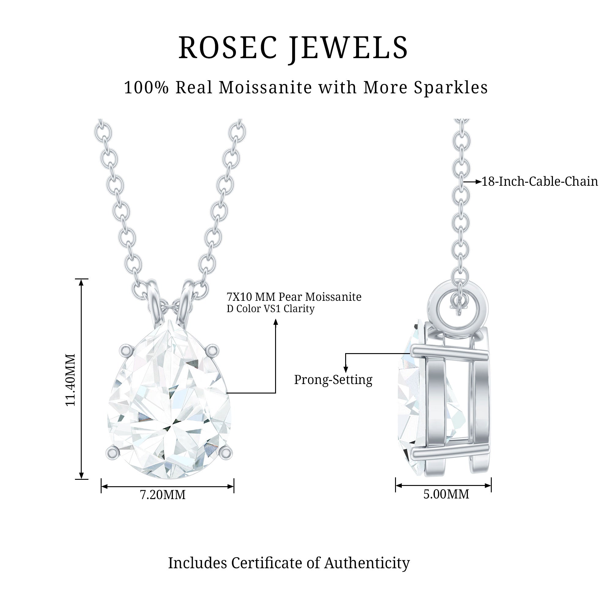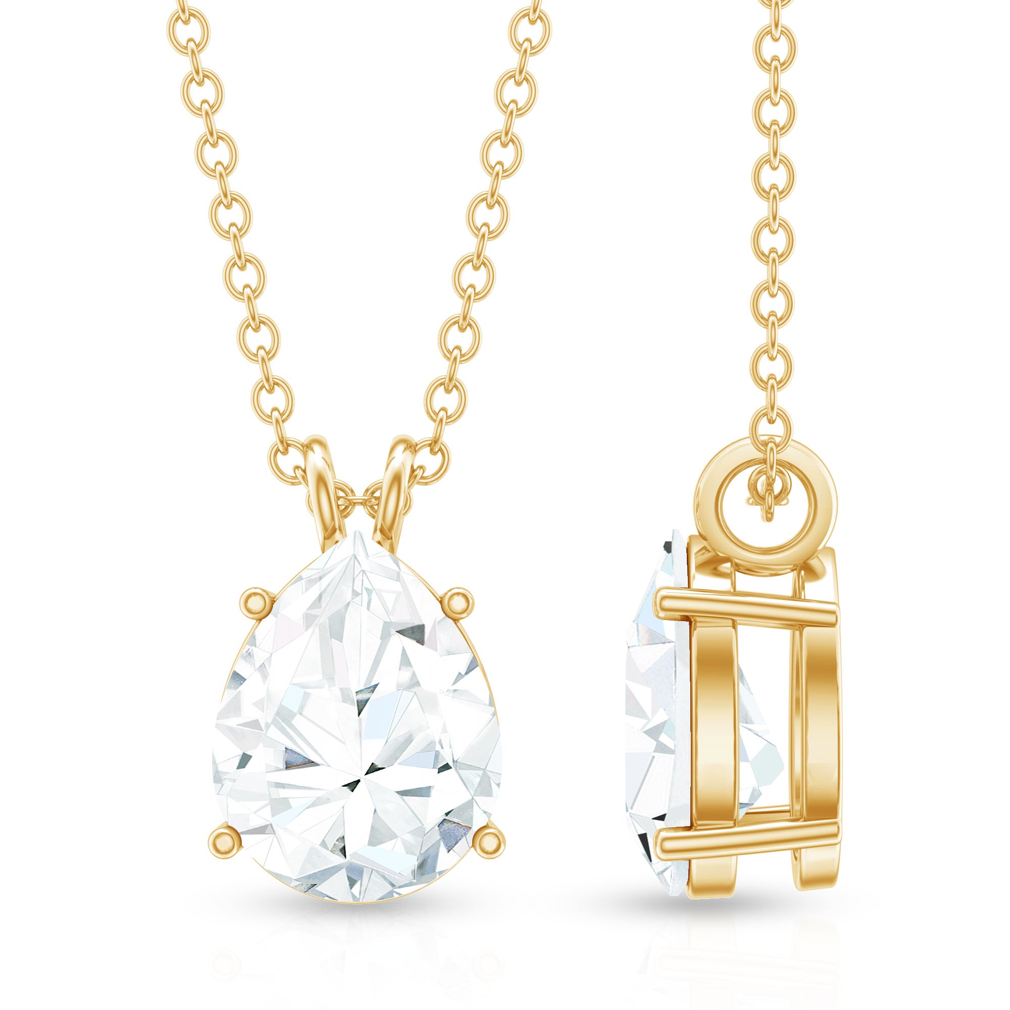 Certified Moissanite Teardrop Solitaire Pendant in Prong Setting