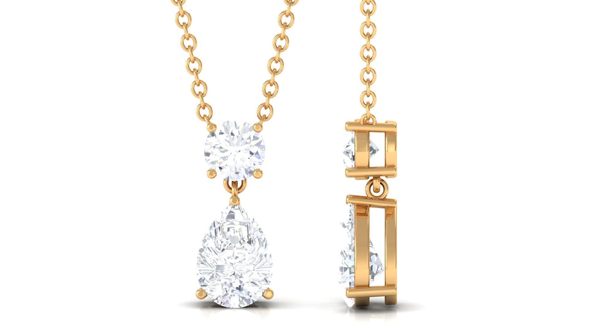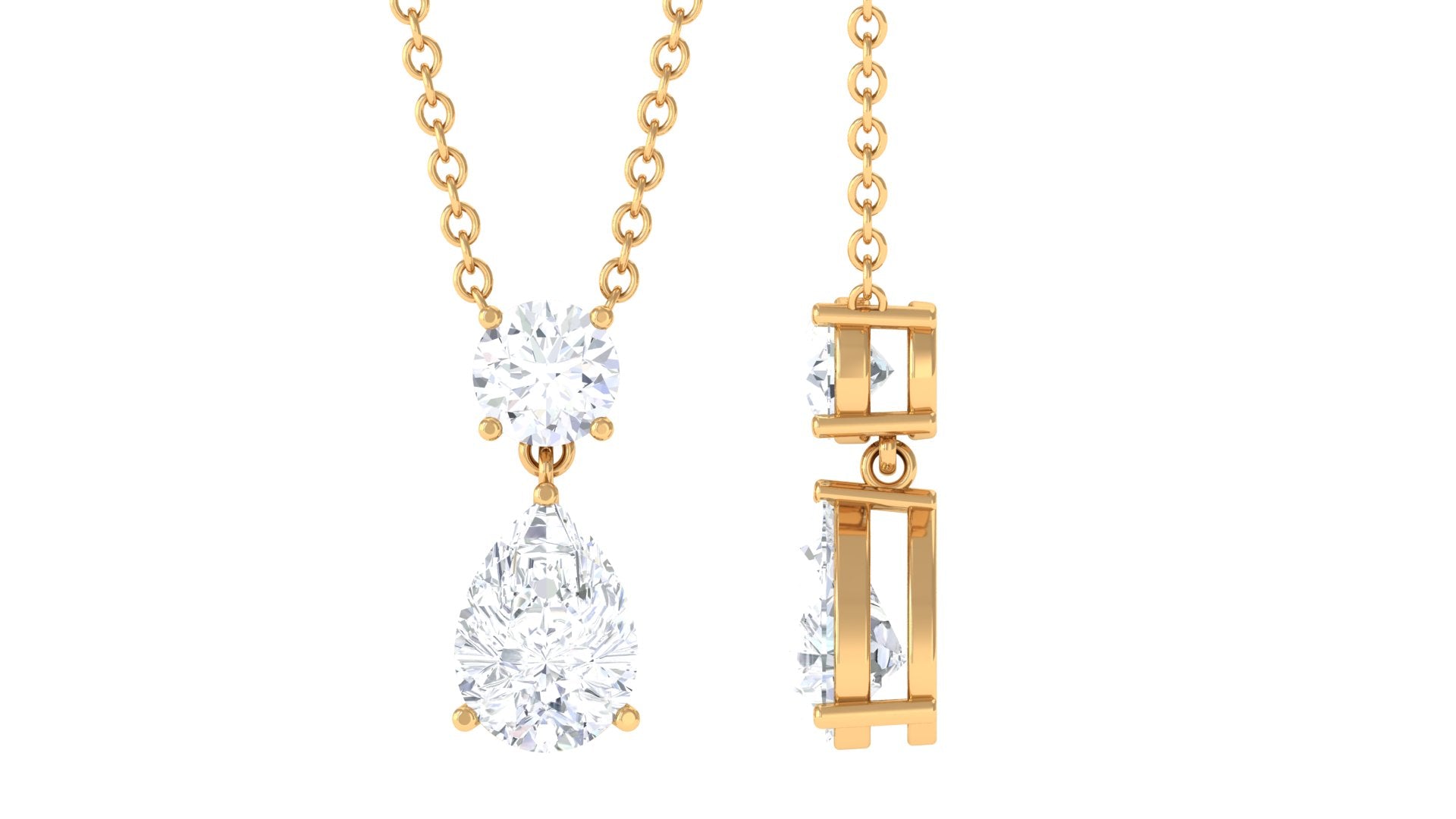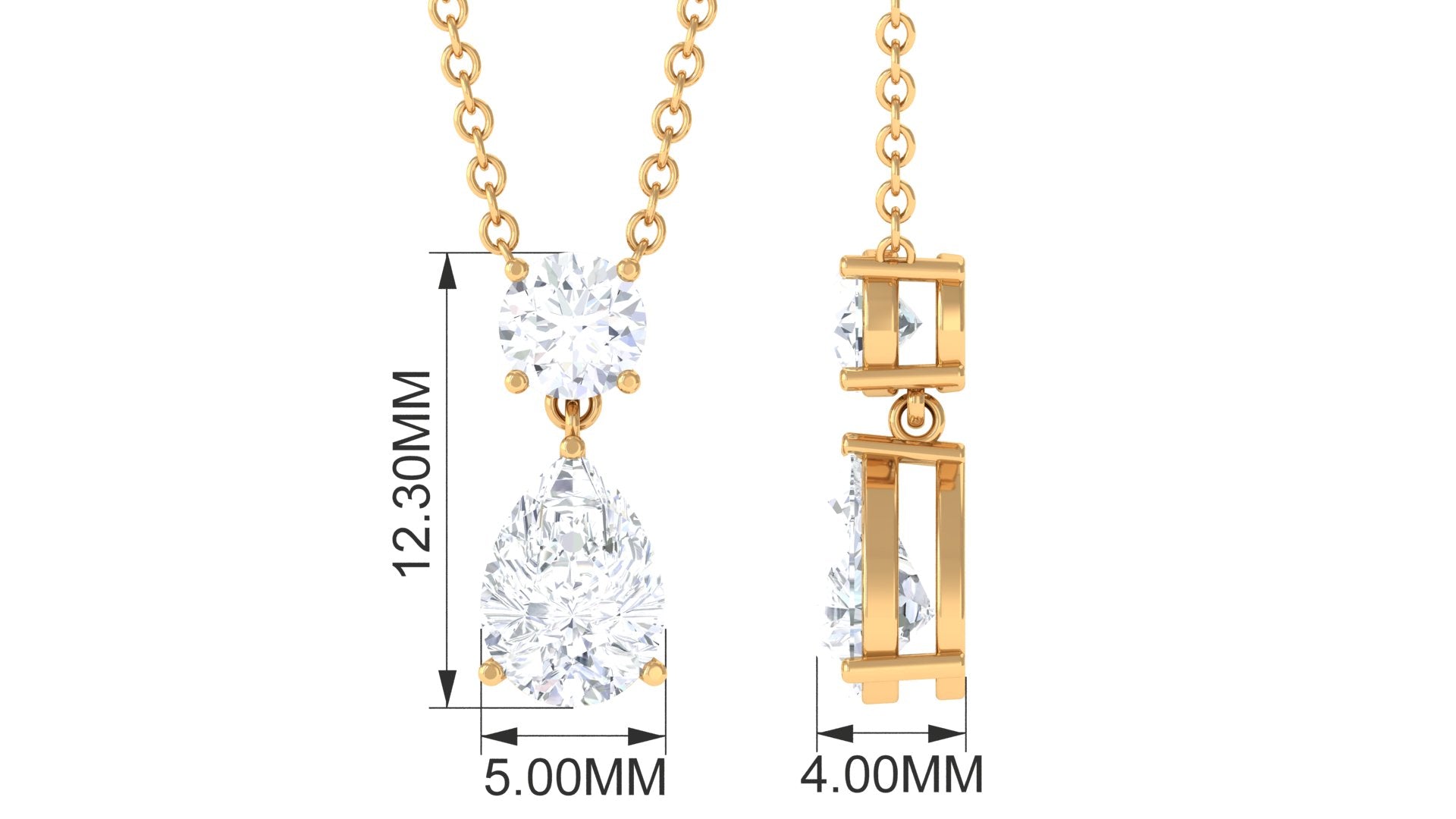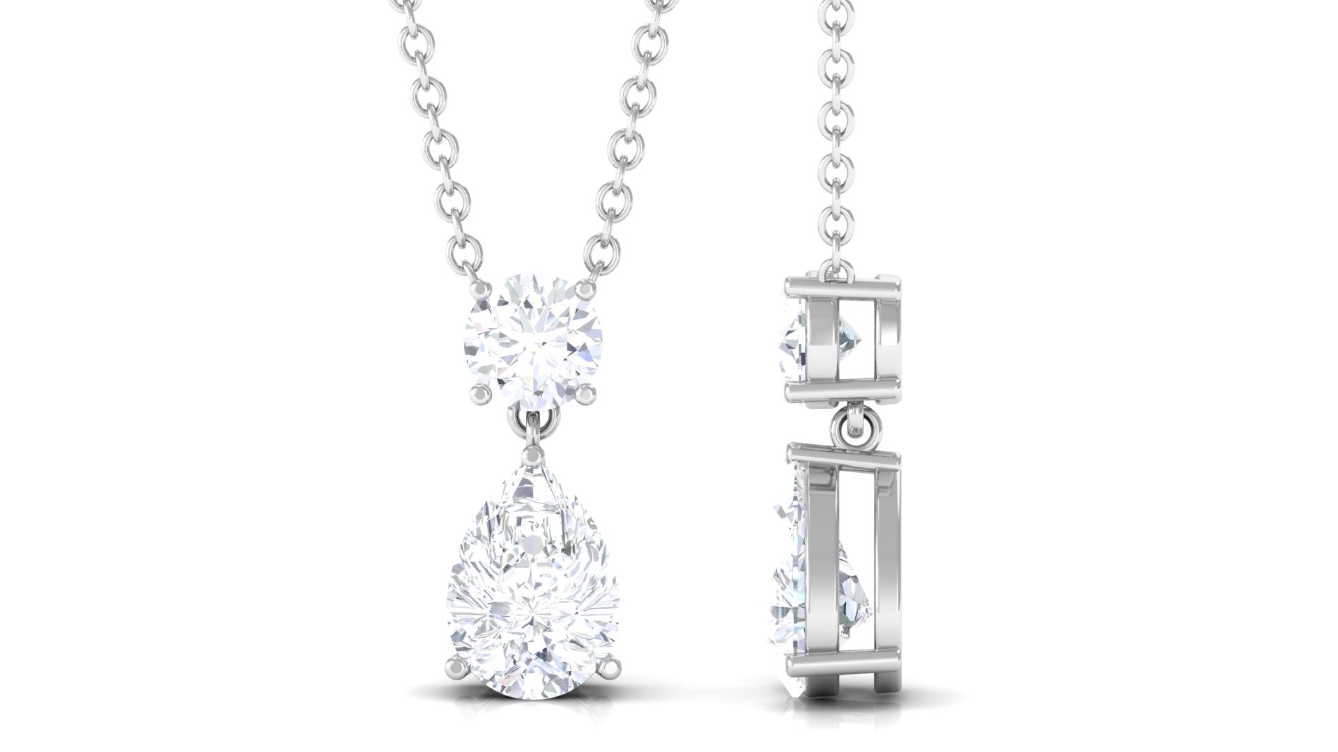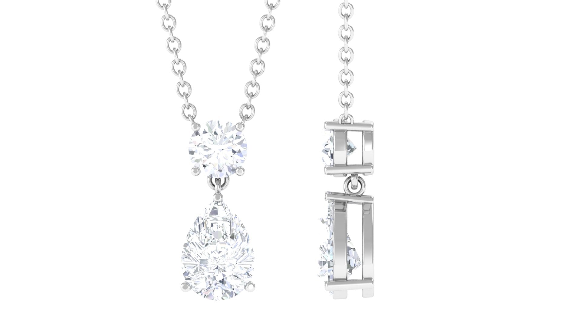 Take your style game a level up with this Moissanite Pendant. It features a 5X7 MM Pear Shape Moissanite securely placed in Prong Setting topped with Round Shape Moissanite. The pendant has a hidden bail which makes it sit beautifully on the neckline. The pendant beholds the classic shine of D-VS1 Quality Moissanite which adds glares to the overall look. This Teardrop Pendant will be shipped to you in a premium quality with the certificate of authenticity.