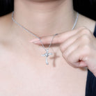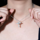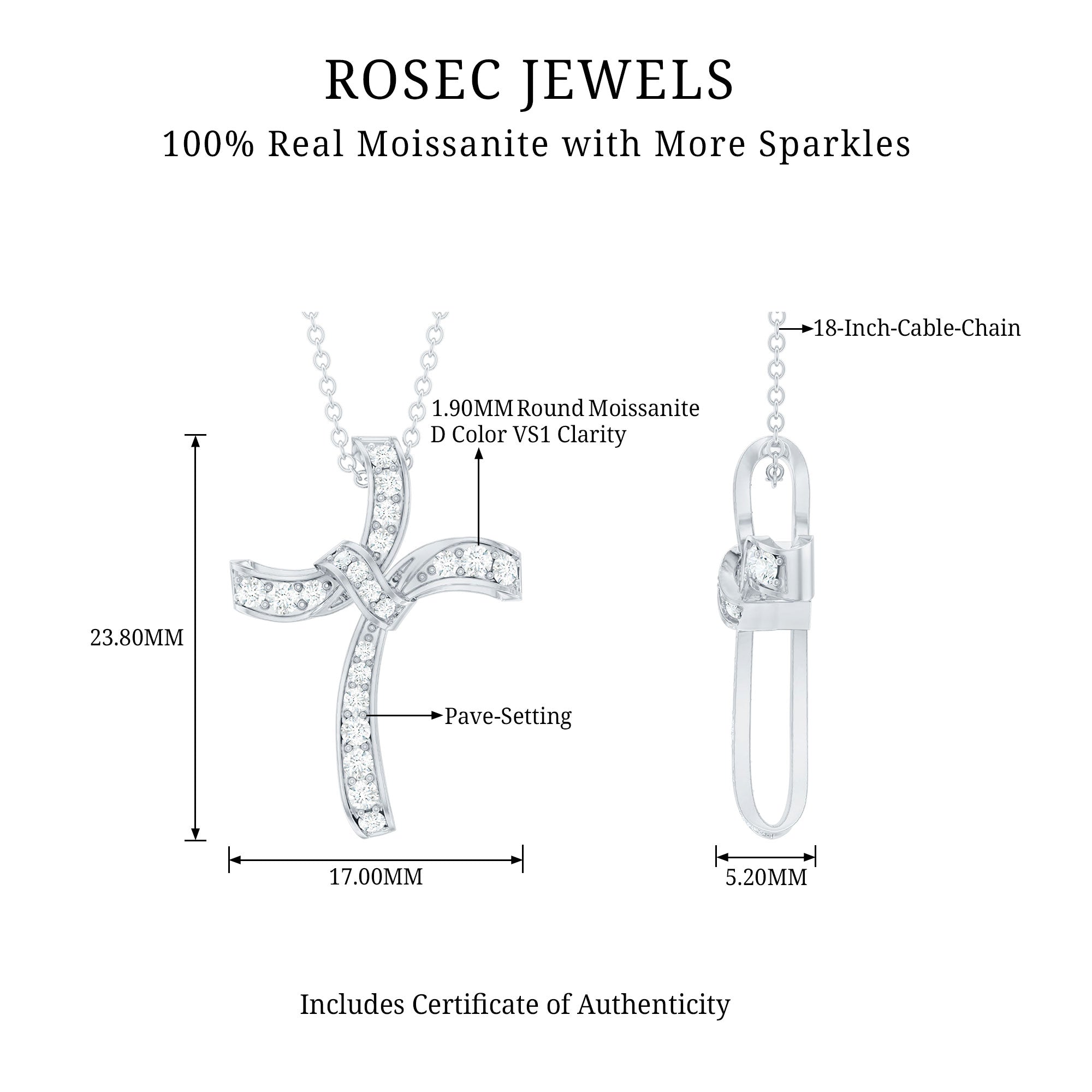 Keep your faith close to your heart with this Moissanite Cross Pendant, crafted with 14K White Gold Plated Silver to embrace your belief. The pendant features a metallic cross frame studded with smaller Moissanite. This Religious Cross Necklace beholds the classic shine of D-VS1 Quality Moissanite securely placed in Pave Setting. Present this pendant to someone you adore the most as a symbol of respect and commitment. This pendant will be delivered to you in a velvet pouch to keep it safe and secure when not in use.