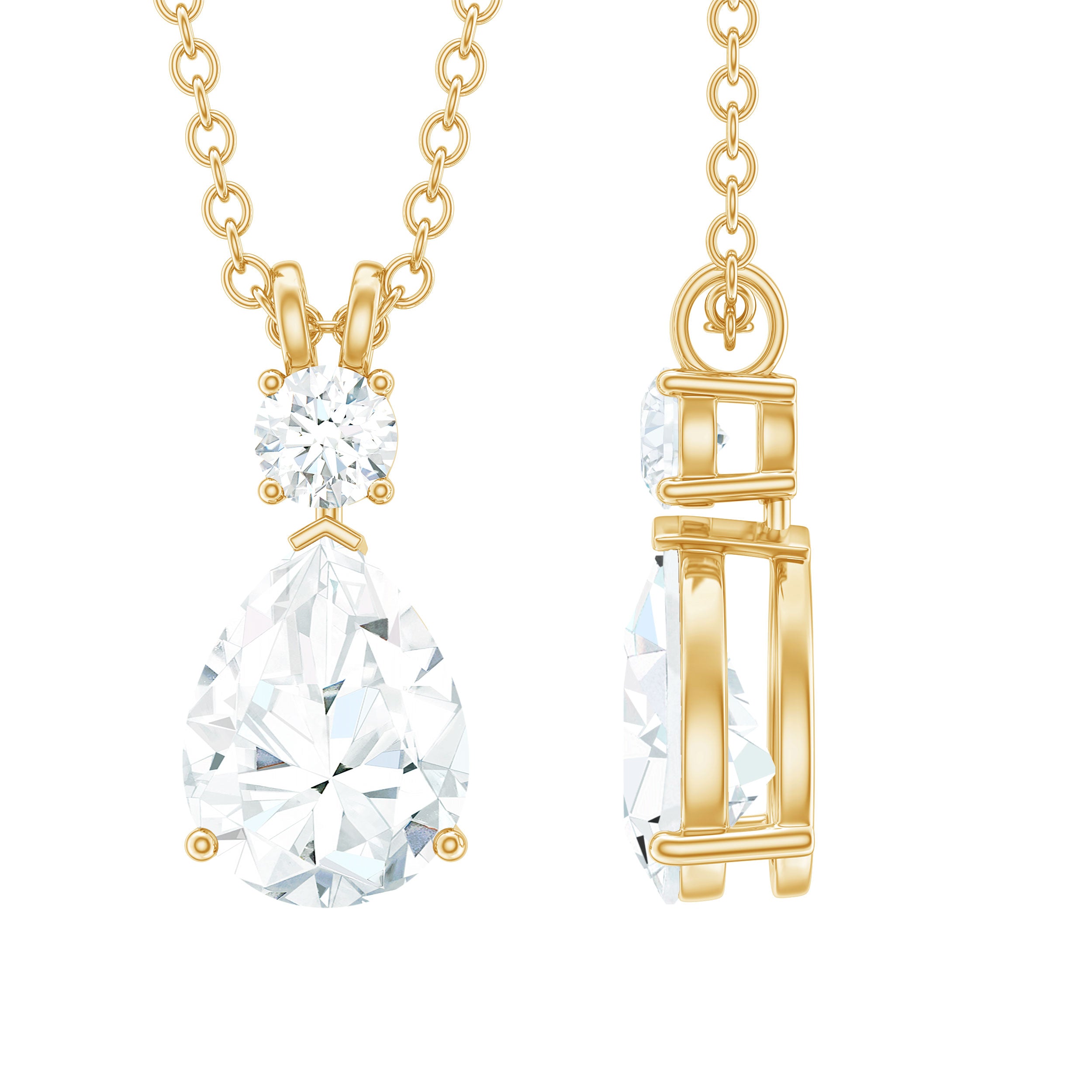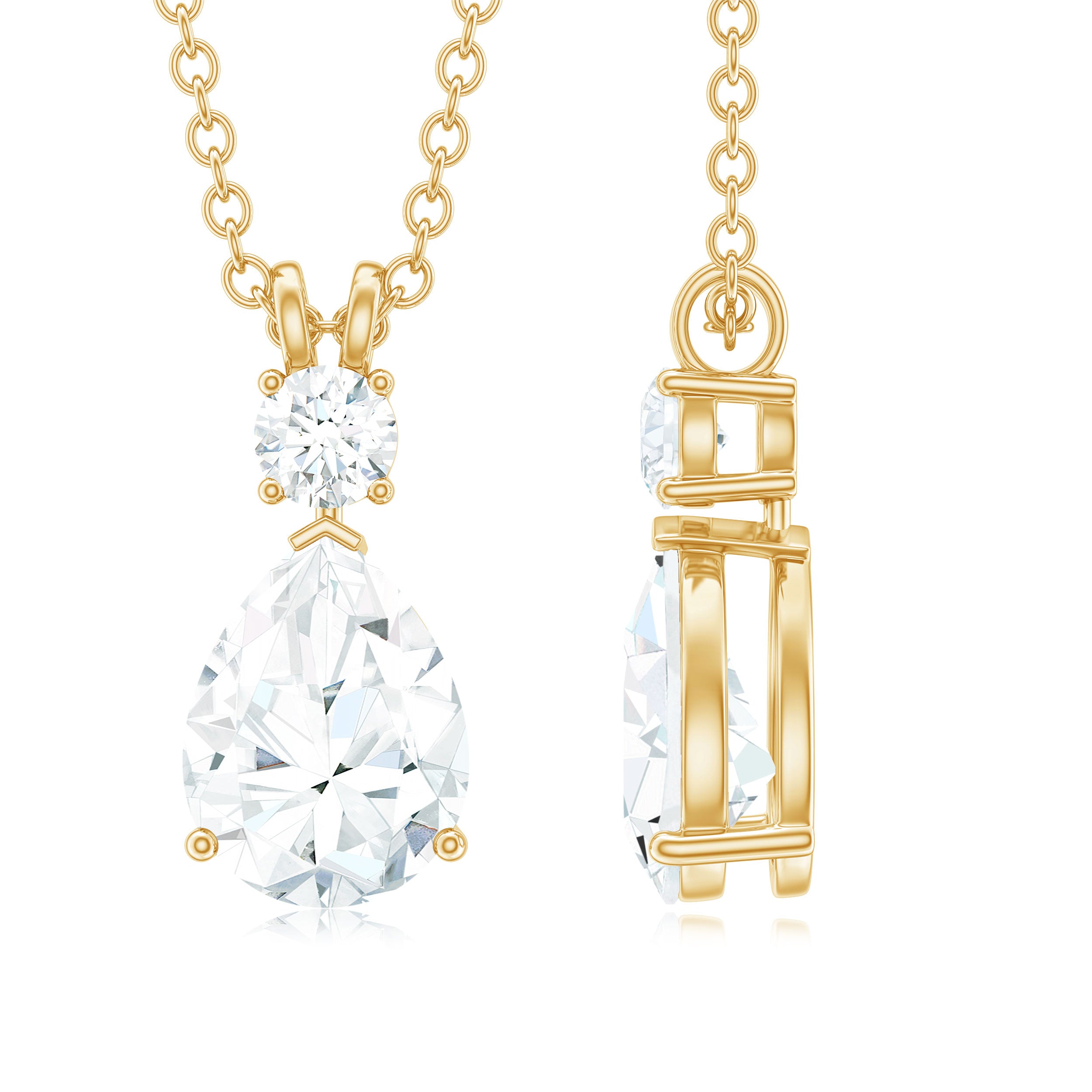 Versatile and elegant, this Moissanite Pendant complements office wear or an evening date. It features an 8X10 MM Pear Shape Moissanite, securely placed in Prong Setting with a shimmering round Moissanite on top. This Teardrop Pendant Necklace exudes D-VS1 Quality Moissanite make it perfect to add shimmer to your basic look. This Wedding Necklace is precisely crafted to embrace your neckline and will be delivered to you in a classic jewelry box for storage when not in use.