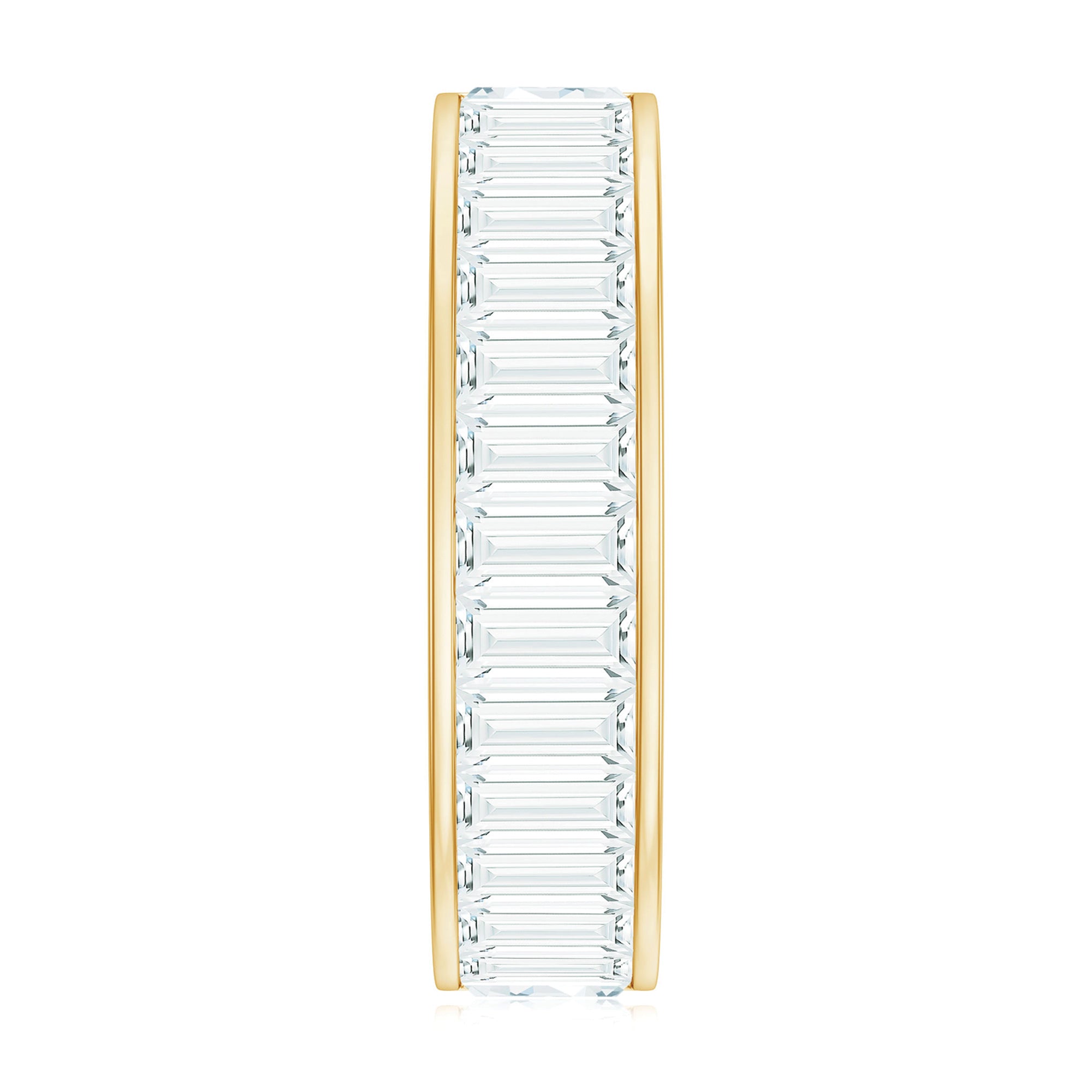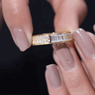 Celebrate the beauty of elegance and everlasting love with this Mens Moissanite Wedding Band - a stunning piece that seamlessly combines traditional sparkle with contemporary design. Expertly handcrafted by talented artisans, this Moissanite Band Ring is crafted from high-quality metal and certified gems, providing remarkable brilliance and value. This Full Eternity Band features dazzling baguette and round cut moissanites set in channel setting that enhances their fire and allure. The thoughtful arrangement results in a sophisticated Wide Eternity Band that is striking yet not overpowering, making it the ideal representation of your enduring connection. Whether you are celebrating a significant occasion or simply looking to add a standout piece to your collection, this Moissanite Anniversary Band is crafted to impress. It gracefully wraps around the finger with a timeless charm that brings both romance and nostalgia. The detailed craftsmanship guarantees not only aesthetic appeal but also lasting comfort and durability. It comes beautifully presented in an elegant jewelry box, making it a perfect gift or a cherished keepsake for yourself. Let every moment shine with this exquisite Mens Wedding Band - because your love deserves nothing short of extraordinary.