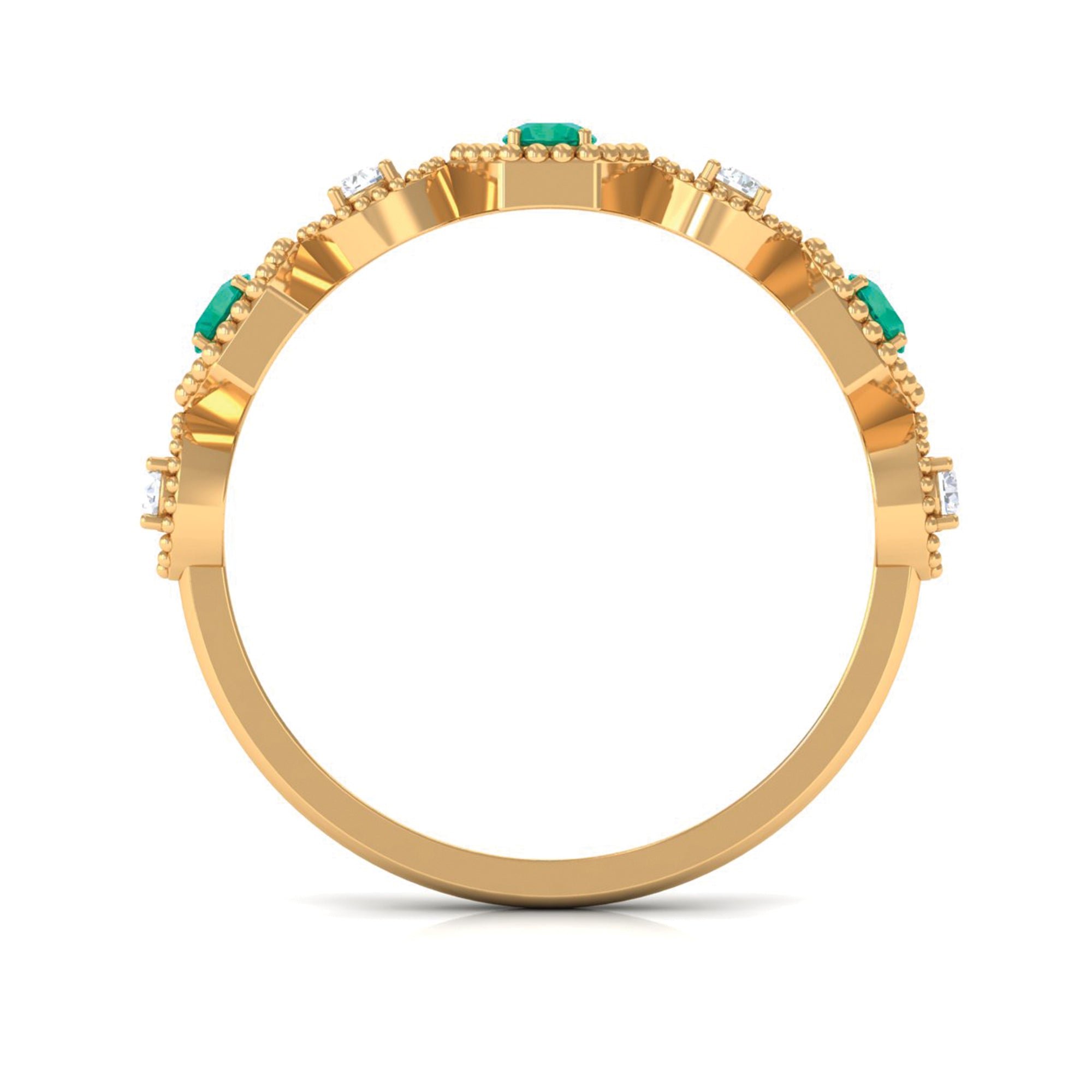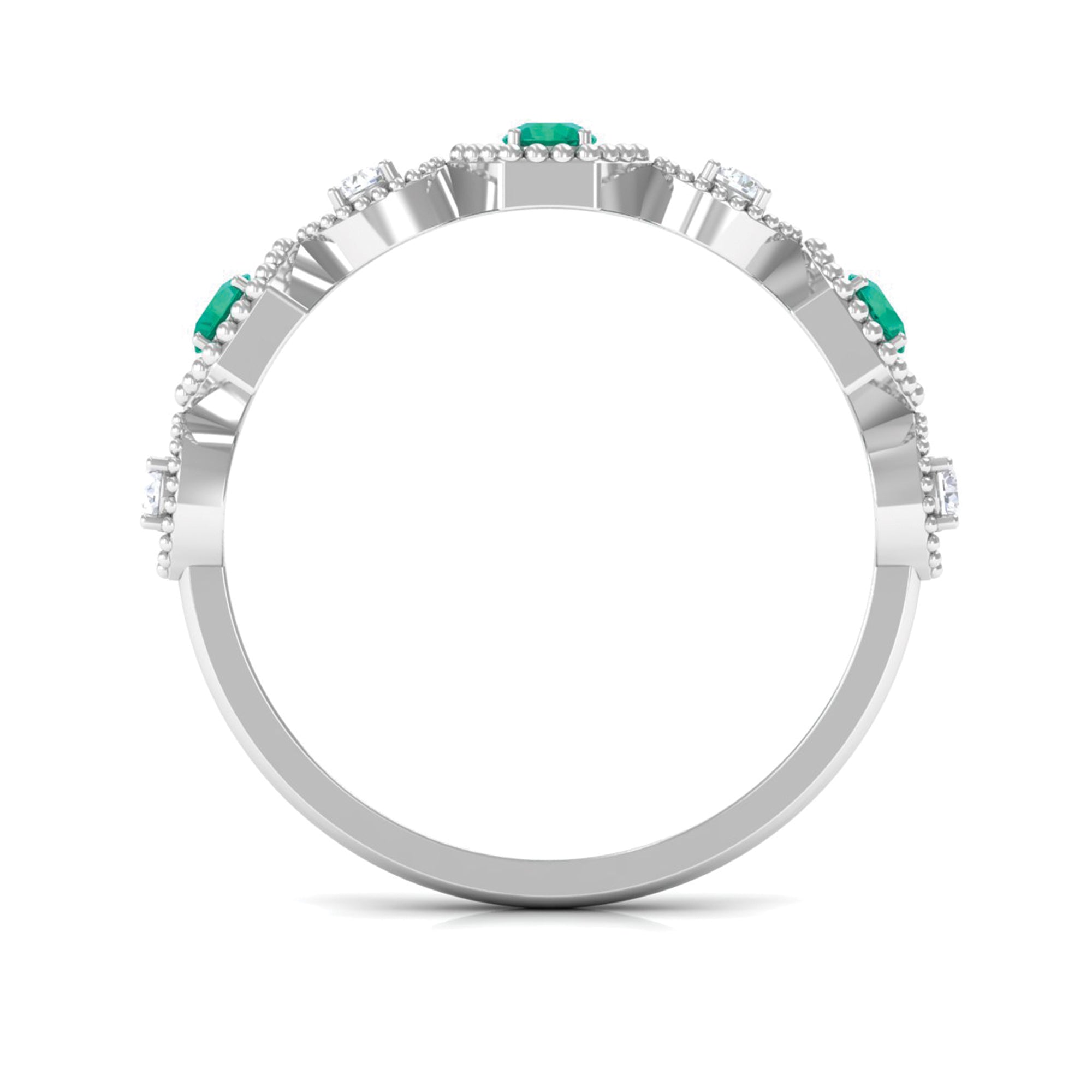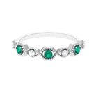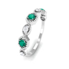 Certified Natural Emerald Art Deco Half Eternity Ring with Diamond