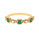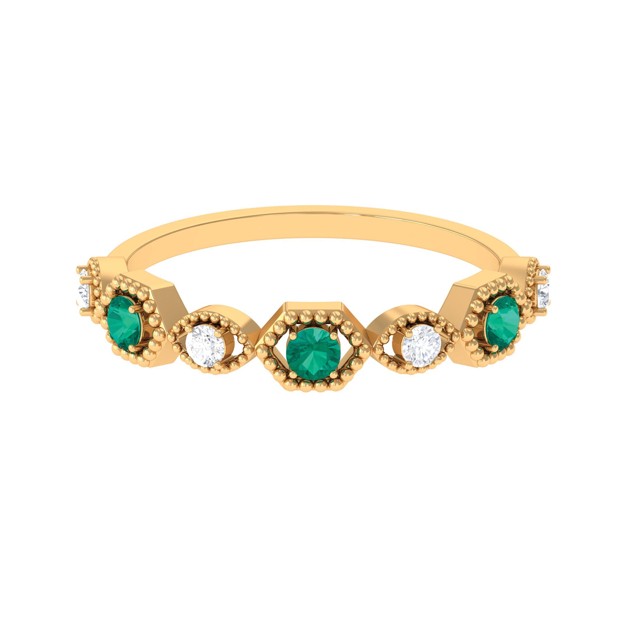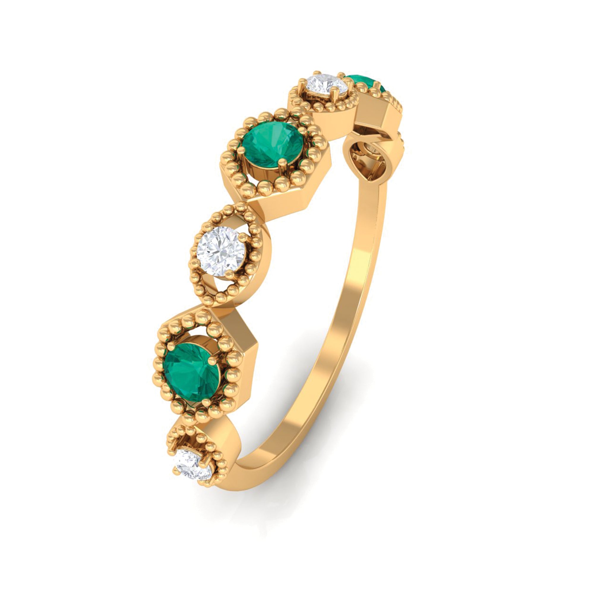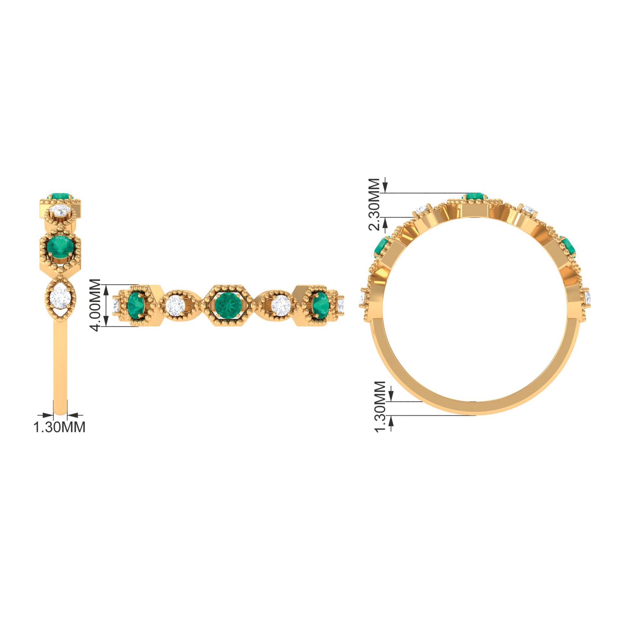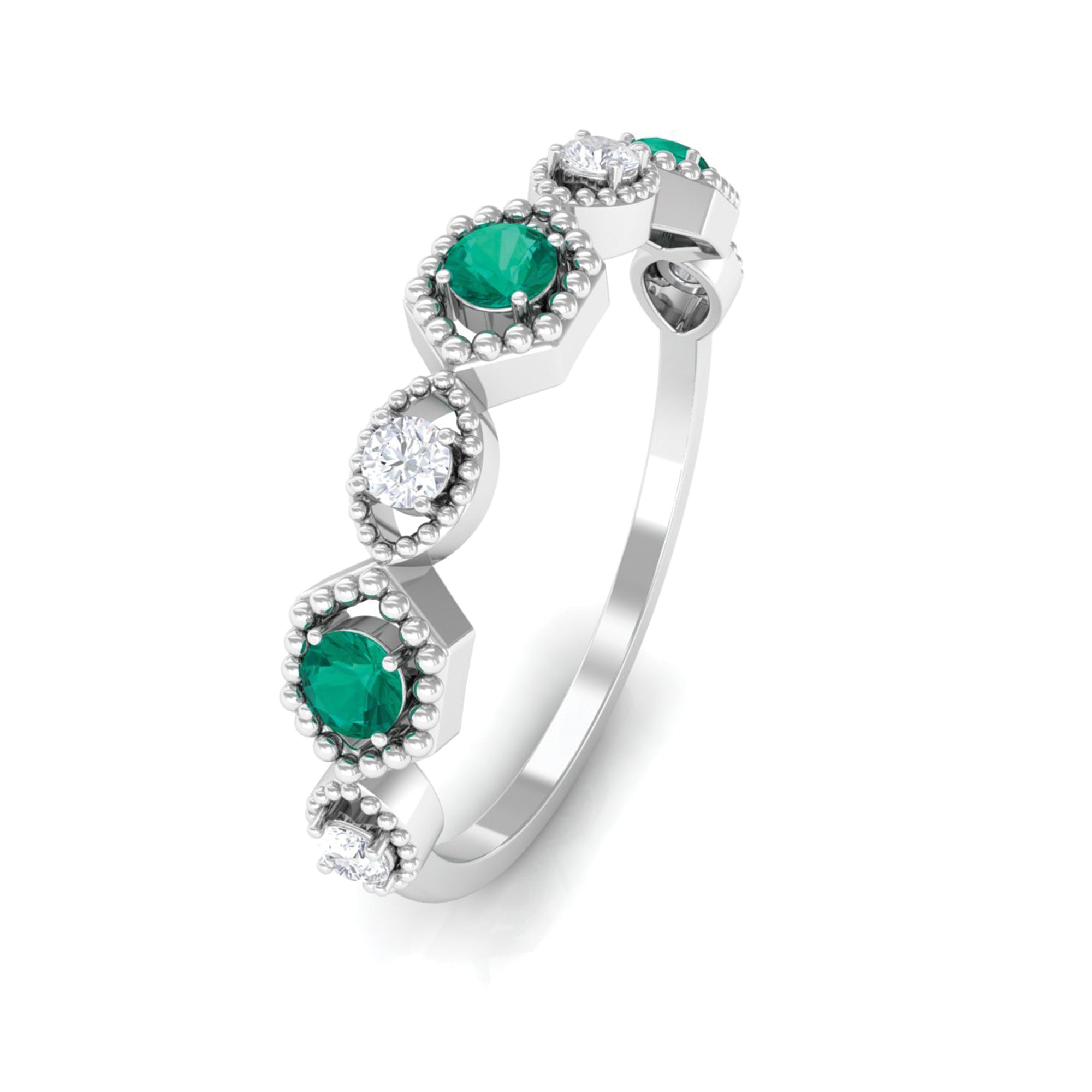 Step back into an era of timeless glamour with this Half Eternity Ring, a stunning fusion of vintage charm and modern romance. This captivating piece features a geometric pattern where vivid Emerald and sparkling Diamond stones are set in an alternating pattern, creating a rhythm of color and brilliance. The intricate Beaded detailing enhances its Art Deco appeal, adding depth and a touch of old-world elegance to the design. Each AAA Quality Emerald glows with a lush green hue, a symbol of renewal and everlasting love, while the HI-SI Diamond stones shimmer with pure radiance, reflecting the light of every precious moment shared. Perfect for marking the special milestones or gifting to someone who holds your heart, this Emerald Diamond Ring embodies grace, style and emotion all in one. Presented in an elegant jewelry box and available in various sizes, this Emerald Anniversary Ring is a statement of love that transcends time.