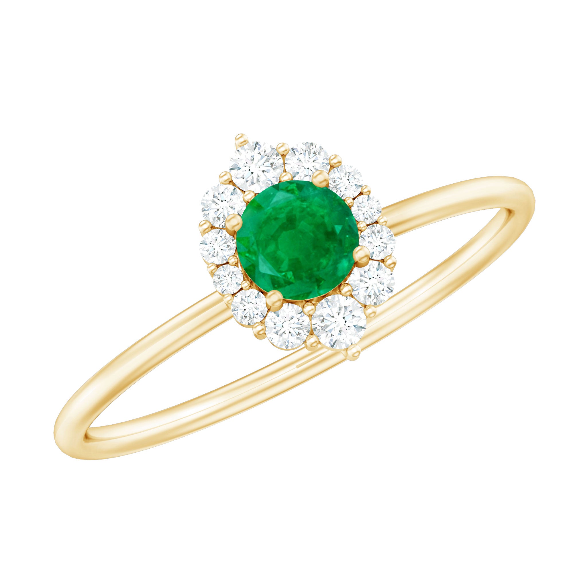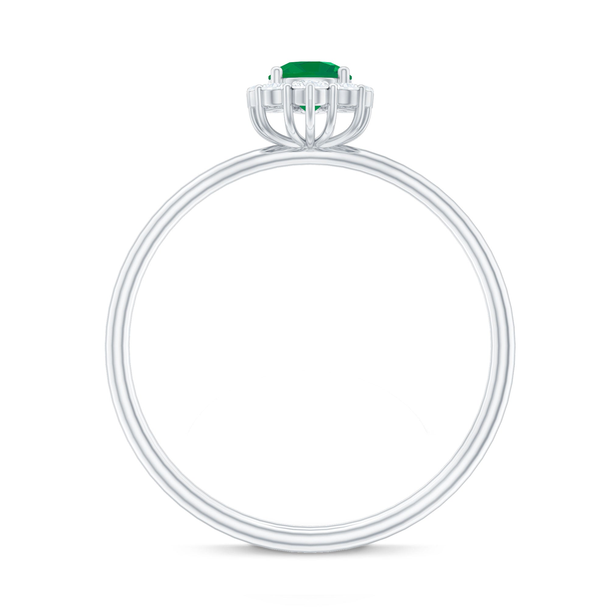 Certified Natural Emerald Promise Ring with Diamond Halo