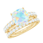 Certified Natural Ethiopian Opal Cushion Cut Engagement Ring with Wedding Band