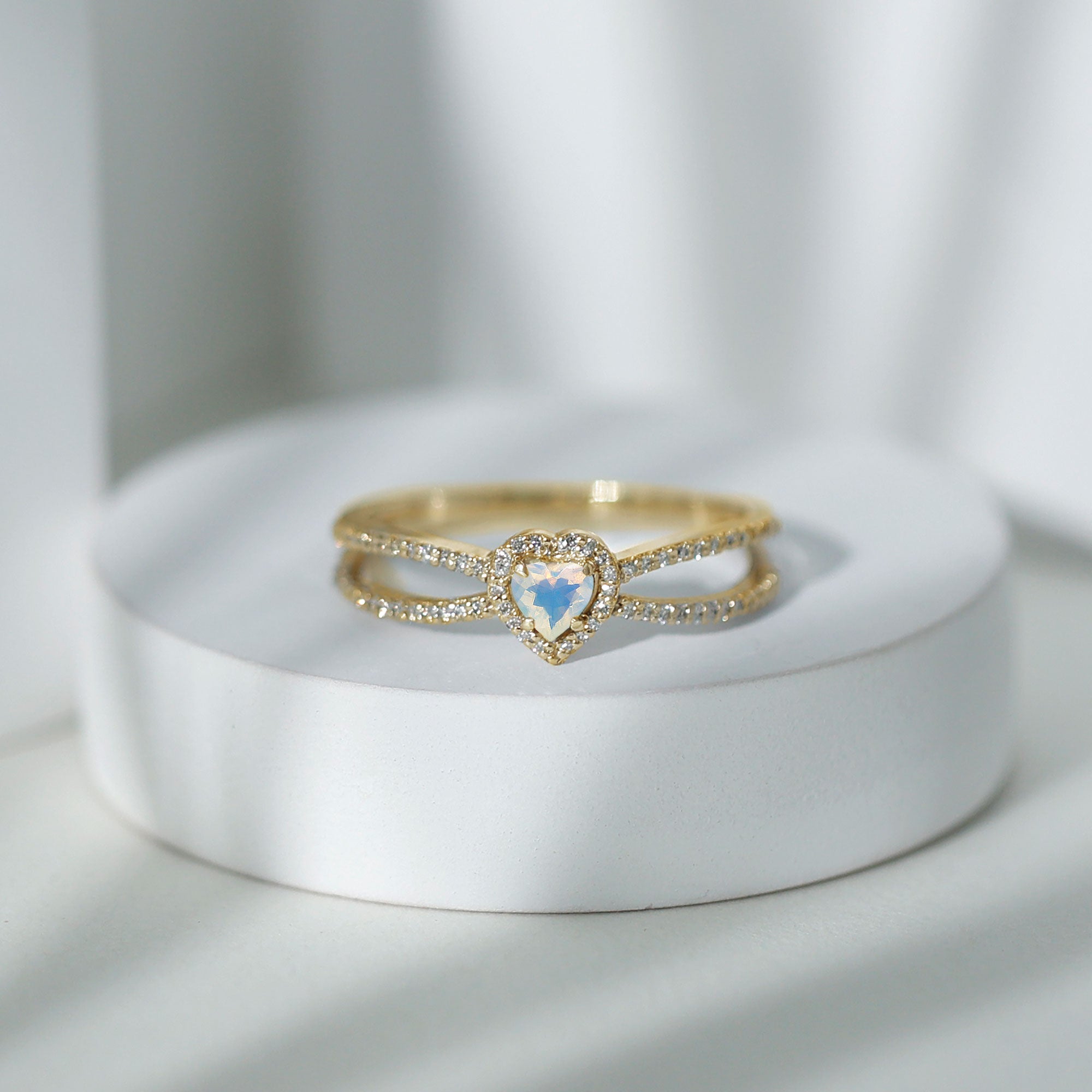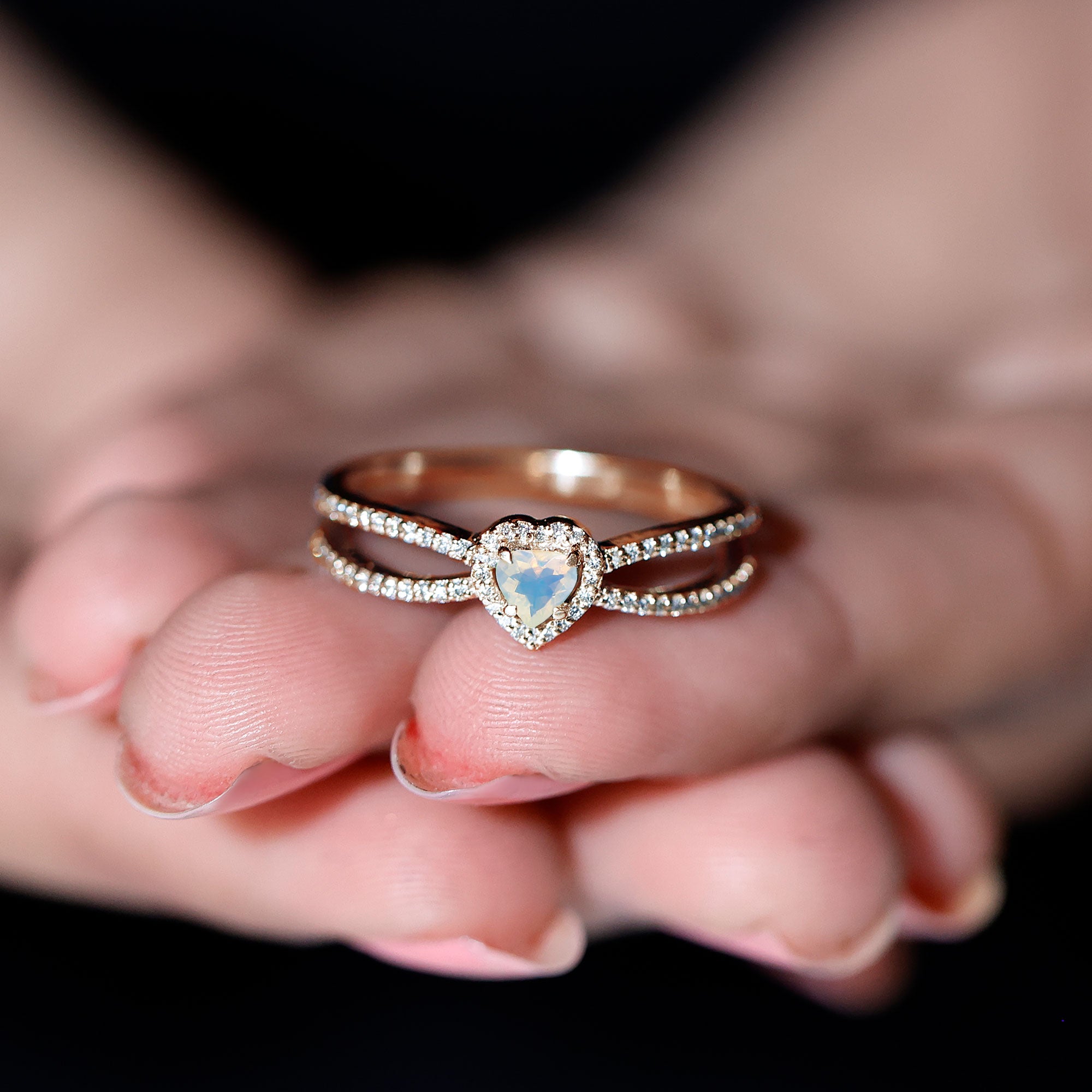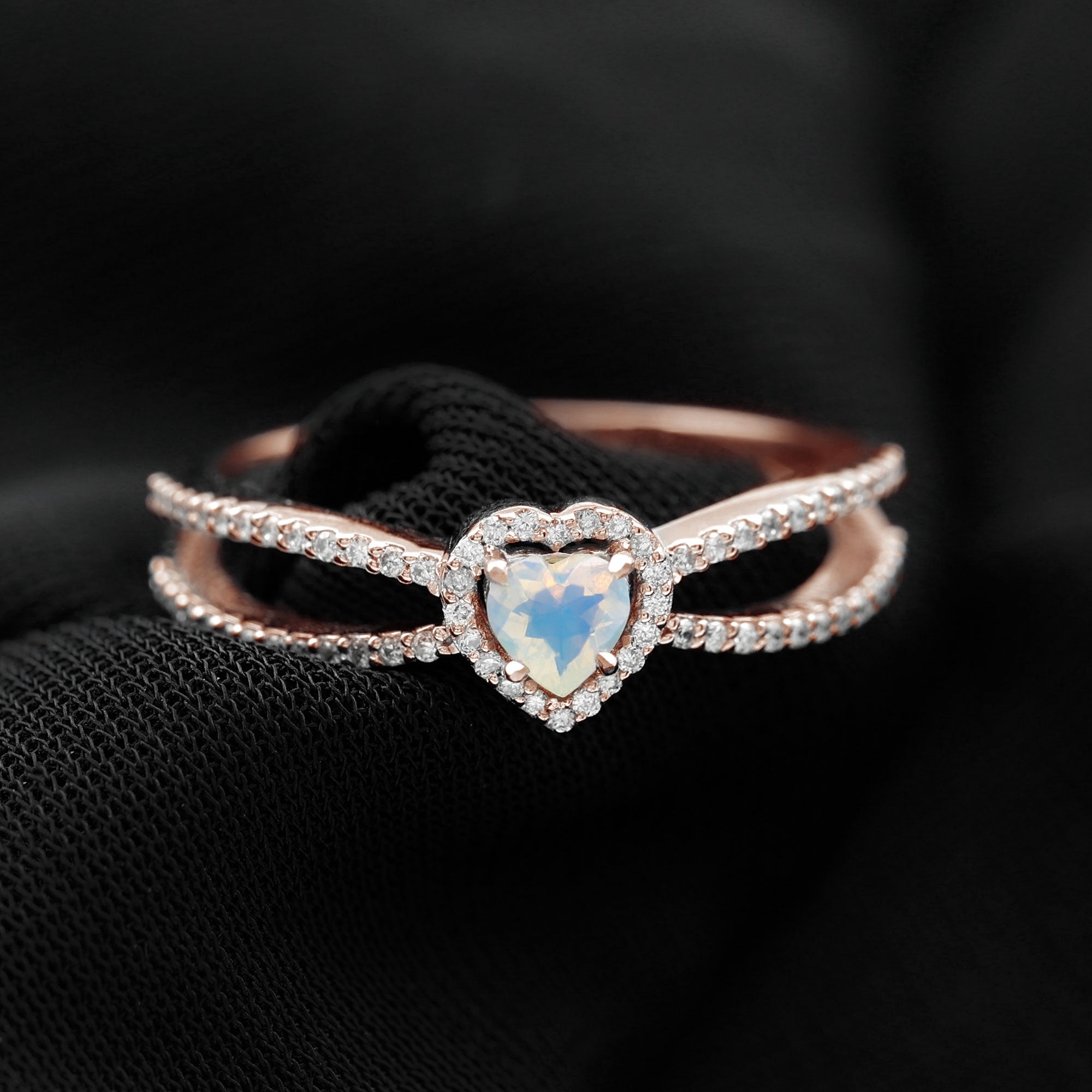 Love takes center stage with this Heart Shaped Engagement Ring, designed to dazzle and destined to be adored. At the heart of this breathtaking piece lies a 6 mm Heart Shape Ethiopian Opal, a gem that shimmers with soft rainbow hues, reflecting the many shades of true love. Surrounding it is a sparkling Diamond Halo, amplifying the magical glow of the opal, while a Split Shank Band adorned with dainty Diamond stones adds layers of sparkle and elegance. The split design symbolizes two paths joining into one, a perfect metaphor for your love story. This Opal Heart Ring is made for the romantic dreamer who feels a little deeper. Whether you are planning an unforgettable proposal or simply want to capture the essence of eternal love in a single moment, this Opal Diamond Engagement Ring speaks volumes without saying a word. This Split Shank Engagement Ring arrives in a beautifully crafted jewelry box, ready to gift and is available in a range of sizes for the perfect fit.