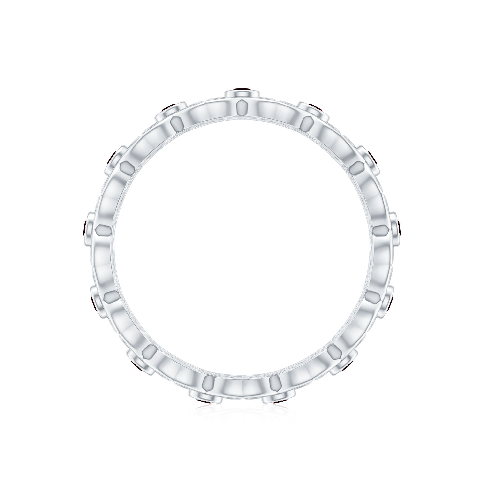 Inspired by the delicate beauty of blooming flowers, this Flower Wedding Band captures the essence of romance and timeless elegance. Each Flower is adorned with a vibrant 2 mm Round Shape Garnet at its center, creating a stunning display of deep red sparks that symbolize passion, love and devotion. The intricate floral design wraps gracefully around the finger, making this Garnet Wedding Band a perfect choice for someone who loves romantic details with a modern twist. Available in various ring sizes and presented in a signature jewelry box, this Garnet Eternity Band is ready to be gifted to celebrate weddings, anniversaries or milestones that deserve to be cherished forever. Beyond its striking beauty, this Eternity Wedding Band tells a story of love that blooms endlessly. Elegant, romantic and full of charm, it is a symbol of eternal affection and the joy of a love that continues to flourish.