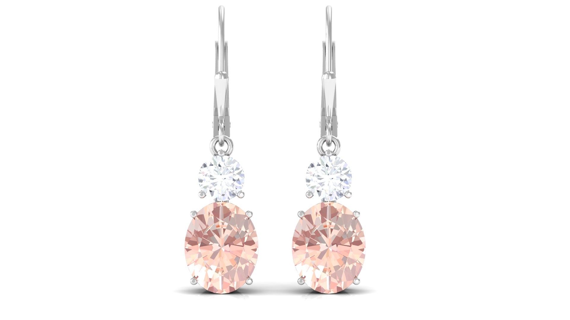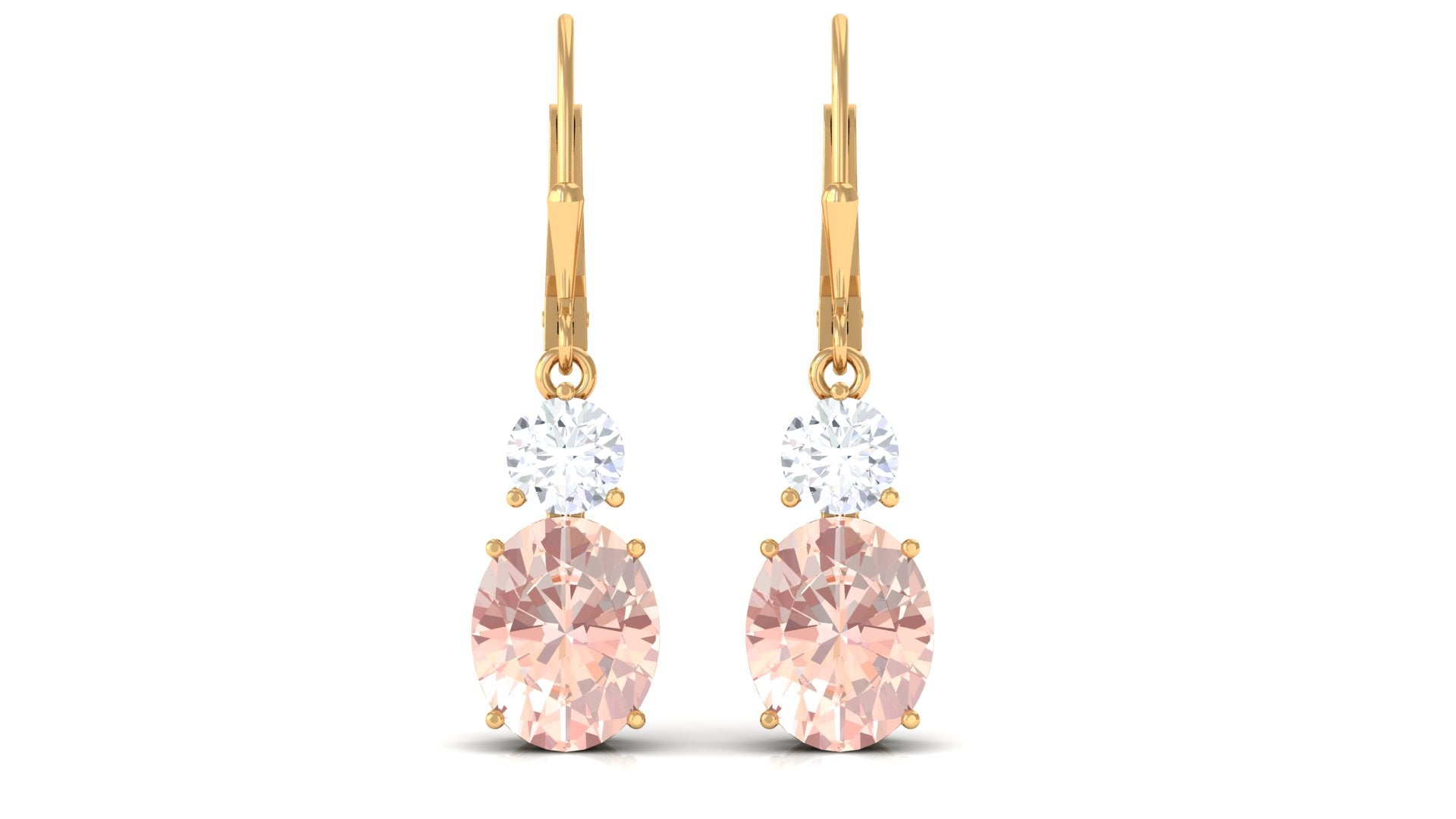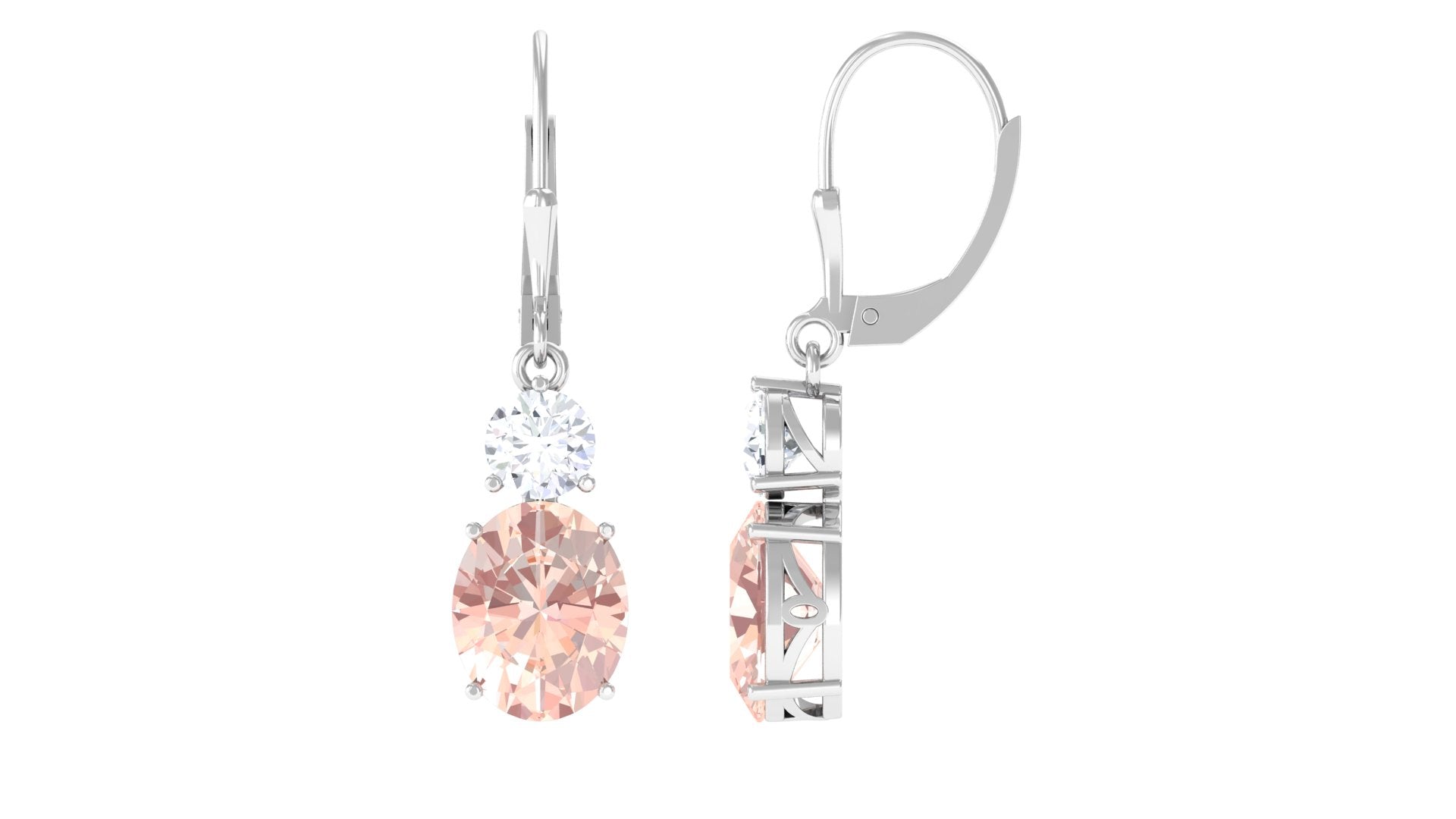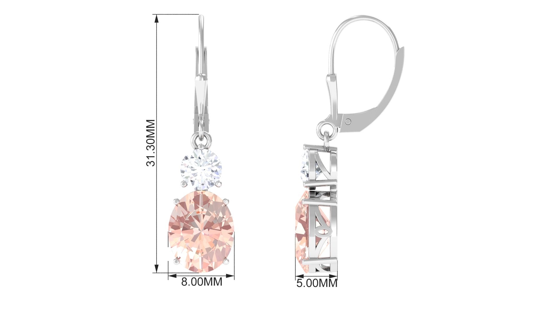 Let these Morganite Earrings elevate your style effortlessly. Embellished with 5 MM Oval Morganite meticulously set in prong setting accentuated by Round petite Moissanite sparkling at the top of it, adding an extra touch of charm to the overall design. With their lever back closures, these dangle earrings are a quick and easy alternative to wear without any hustle. These drop earrings seamlessly blend elegance and sophistication. They also make a lovely birthday, or anniversary gift for your dear ones and make every moment memorable.