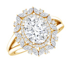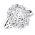 Turn heads and steal hearts with this breathtaking Lab Diamond Engagement Ring, a dazzling masterpiece made for the spotlight. At the center sits a shimmering 7X9 MM Oval Shape Lab Grown Diamond of EF-VS Quality, bursting with brilliance and elegance. Framing this stunning centerpiece is a luxurious double halo, inner Halo of shimmering Round Lab Diamond stones and outer Halo that beautifully combines both Marquise and Round Shape stones, creating a floral inspired design that is nothing short of enchanting. The Split Shank Design adds extra drama, giving this Double Halo Engagement Ring a bold, glamorous look that feels like a true work of art. Whether you are saying yes, celebrating a milestone, or simply love standout jewelry, this Lab Diamond Statement Ring delivers the perfect blend of romantic charm and modern sophistication. This Cocktail Ring is made to shine at every angle, capturing light and admiration with every movement. Crafted for those who embrace grand love stories and sparkle, this 2 Ct Lab Grown Diamond Ring is also an ethical choice, bringing beauty and conscience together effortlessly. Make your engagement unforgettable or elevate your collection with this show-stopping design that redefines what it means to shine.
