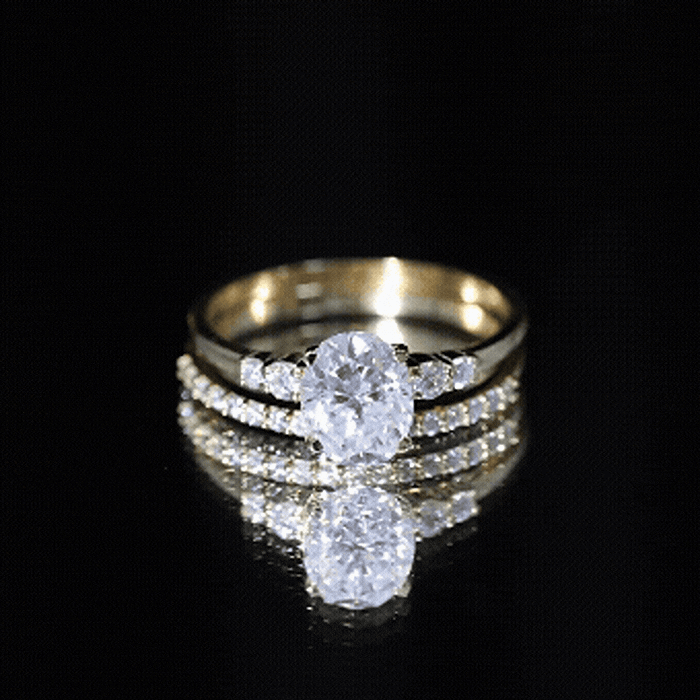Certified Oval Cut Moissanite Engagement Ring with Wedding Band Set
