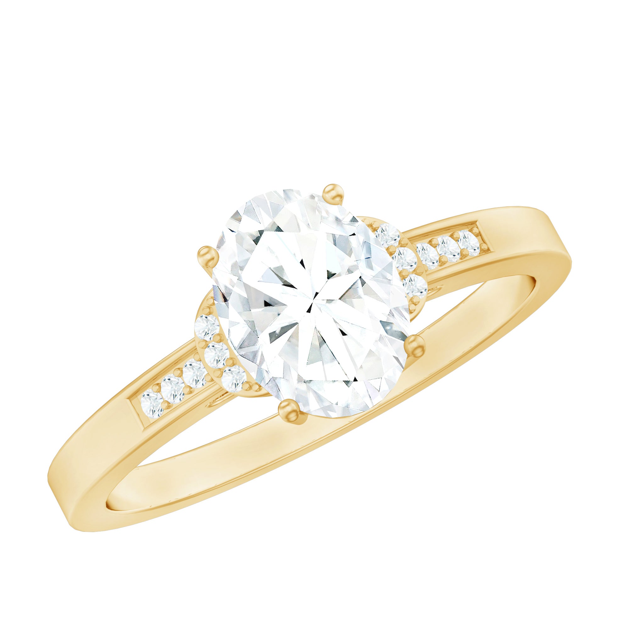 Make your lady love stunned with the breathtaking beauty of our Diamond Engagement Ring on her big day. At its center, it features a 6X8 MM oval shaped diamond (EF-VS quality) set in prong setting, accompanied by round diamond accent on both sides of the center stone. Its simple yet elegant design makes it suitable for everyday wear as well as special occasions. This Oval Engagement Ring is more than just a symbol of love and passion, it shines with beauty and responsibility. We have created it with Lab Grown Gemstones, so not only does it look stunning but it is also environmentally friendly.