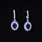 Certified Oval Lab Grown Blue Sapphire Hoop Drop Earrings with Moissanite