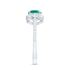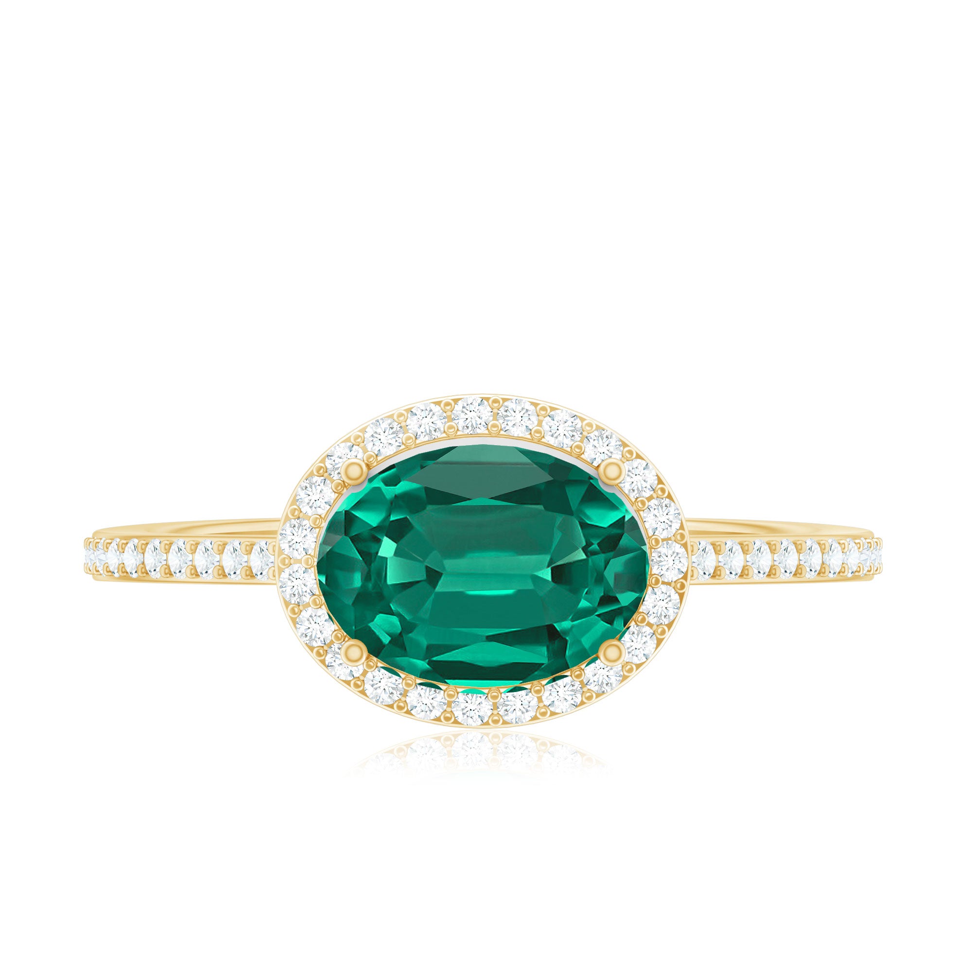 Certified Oval Lab Grown Emerald East West Engagement Ring with Diamond Halo
