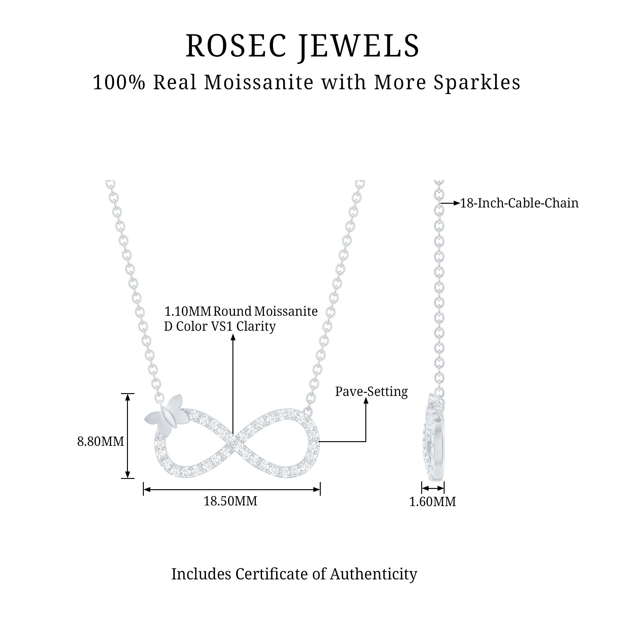 Certified Pave Set Moissanite Infinity Necklace with Butterfly