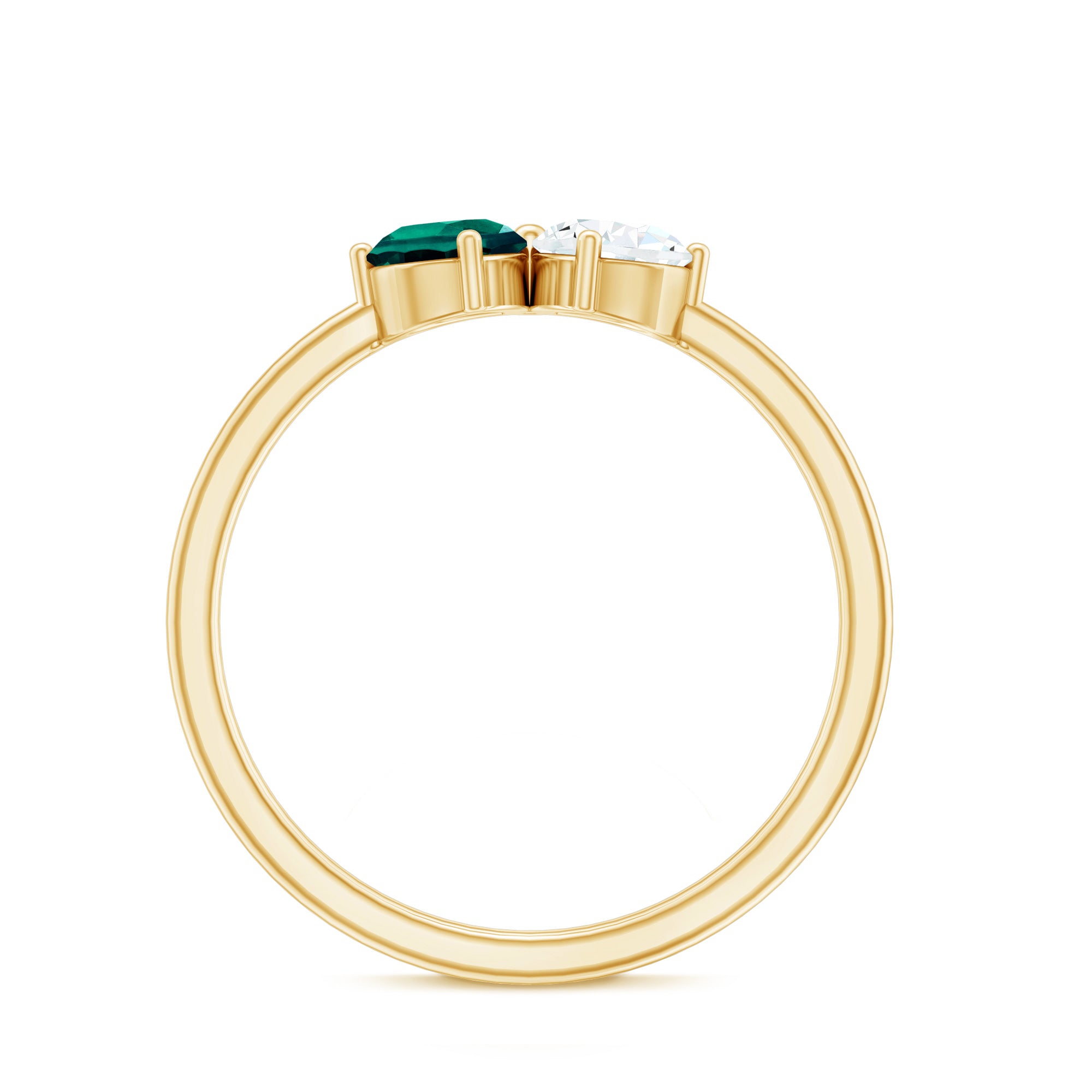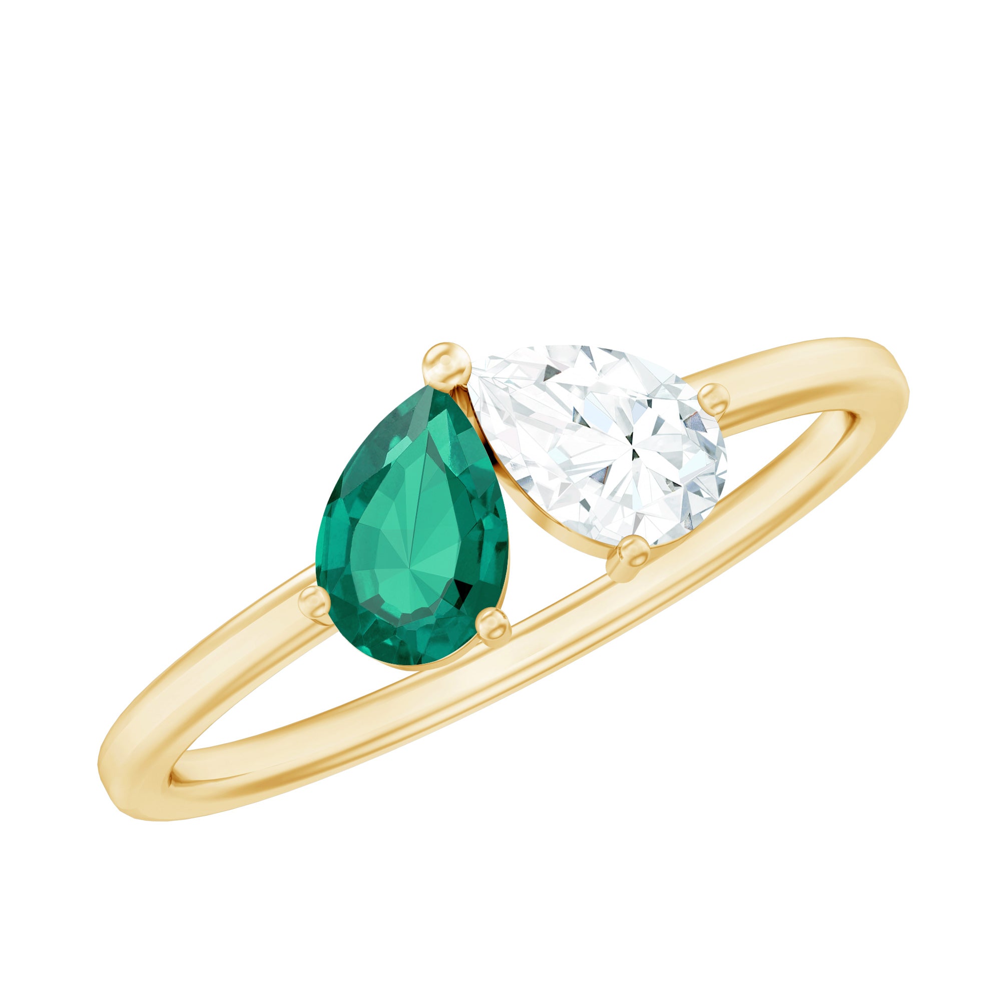 Modern romance meets symbolic design in this captivating Toi Et Moi Ring, a style that is all about celebrating you and me. Featuring a slanted duo of 4X6 MM Pear Shaped stones, a vivid AAAA Quality Lab Created Emerald and a sparkling EF-VS Quality Lab Grown Diamond, this Promise Ring is effortlessly unique and deeply meaningful. The Lab Emerald brings a bold pop of lush green, symbolizing love, renewal and timeless elegance. Paired with the brilliance of Lab Created Diamond, the contrast is pure magic, a perfect reflection of two souls with one shared journey. Set on a sleek, minimal band that lets the stones shine, this Lab Grown Emerald Ring is designed for the trend-setter. This Pear Shaped Emerald Ring is elegant and completely unforgettable and it comes beautifully packaged in a signature jewelry box, ready for that perfect moment. Whether you are popping the question or treating yourself to a piece that is as bold as your love, this Moi Et Toi Ring says it all, without saying a word.