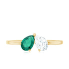 Certified Pear Shape Lab Grown Emerald Toi Et Moi Ring with Diamond