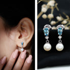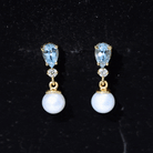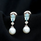 Certified Pearl Wedding Drop Earrings with Aquamarine