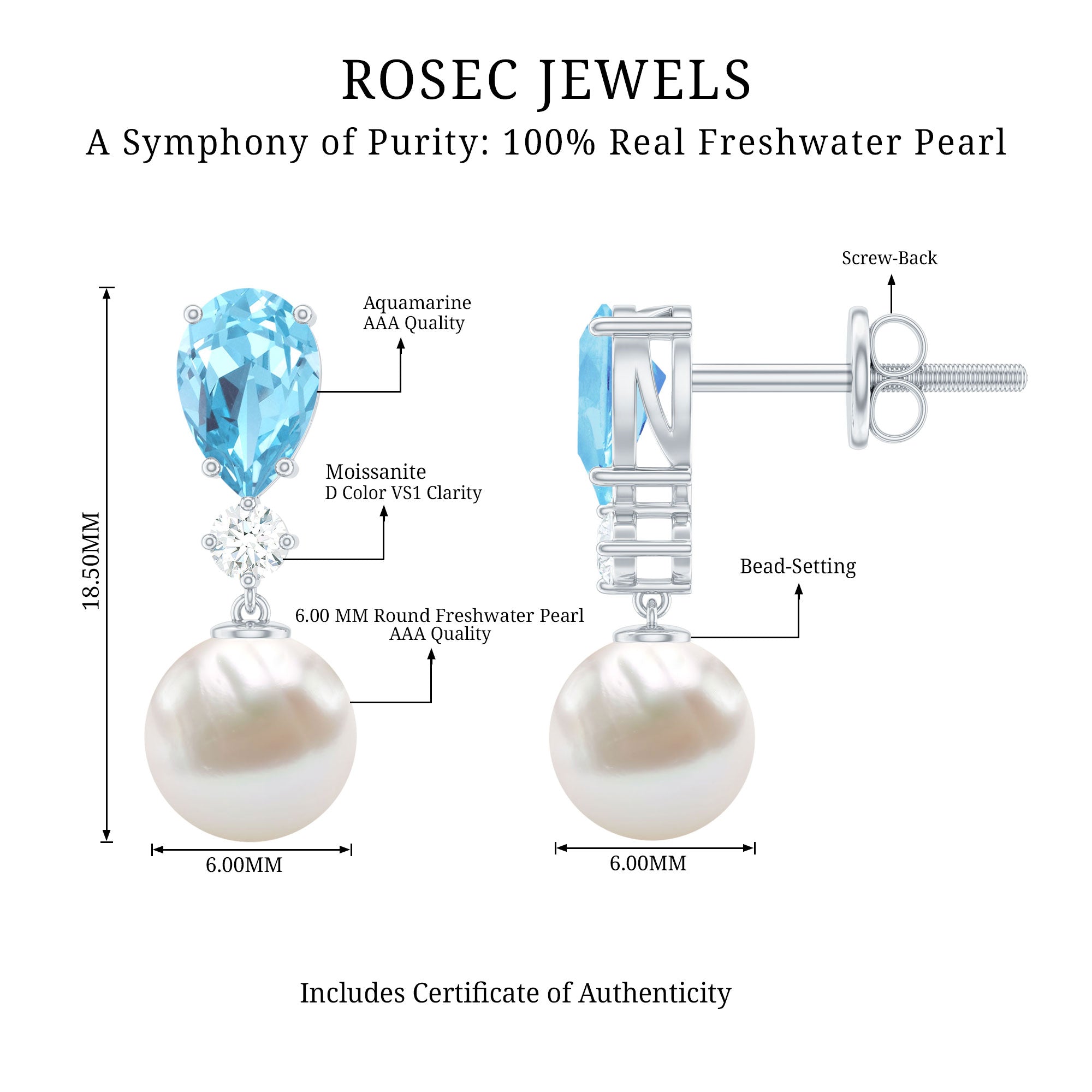 Want to make a dazzling appearance? Then add these Freshwater Pearl Earrings to your jewelry collection. These Bridal Earrings feature a 4X6 MM Pear Shape Aquamarine of Quality and dangle with 6 MM Round Shape Freshwater Pearl of AAA Quality. These beautiful earrings can be paired with outfits for cocktail parties. These Dangling Earrings can be presented as a gift to your special one on occasions such as birthdays or anniversaries. These 2 Stone Earrings with Screw on Backs will stay on place throughout the day.