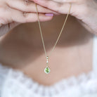 Certified Peridot and Diamond Teardrop Necklace in Gold Plated Silver
