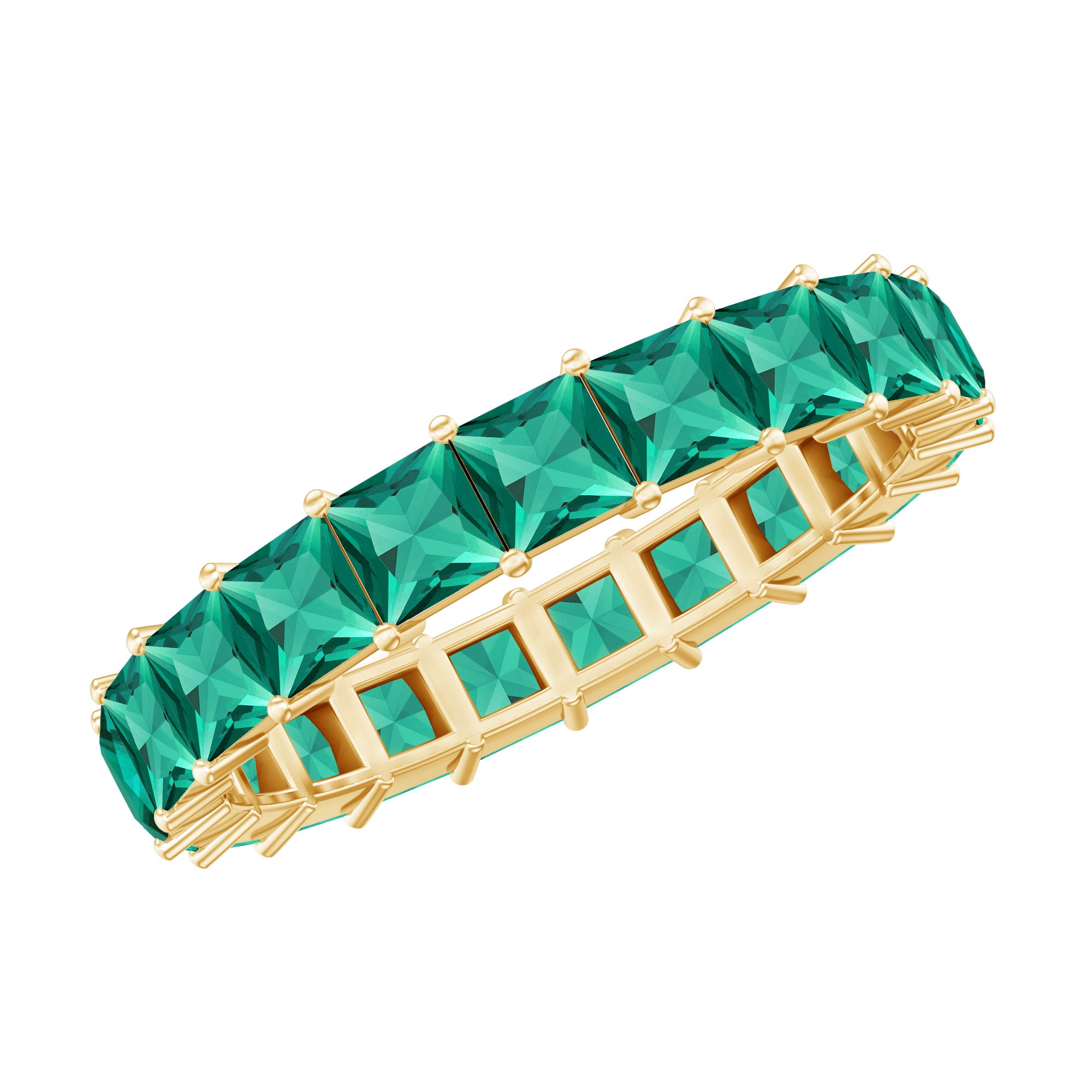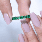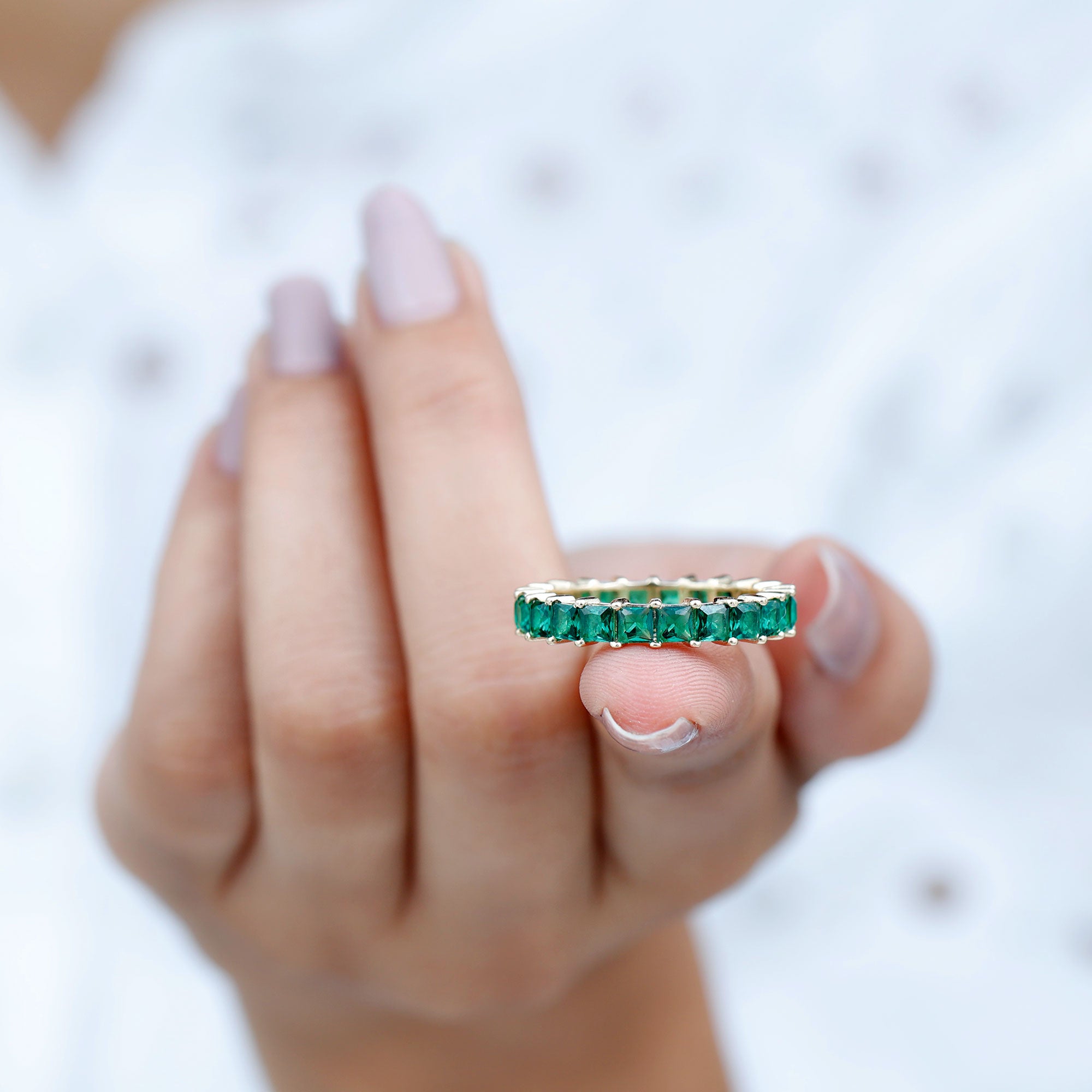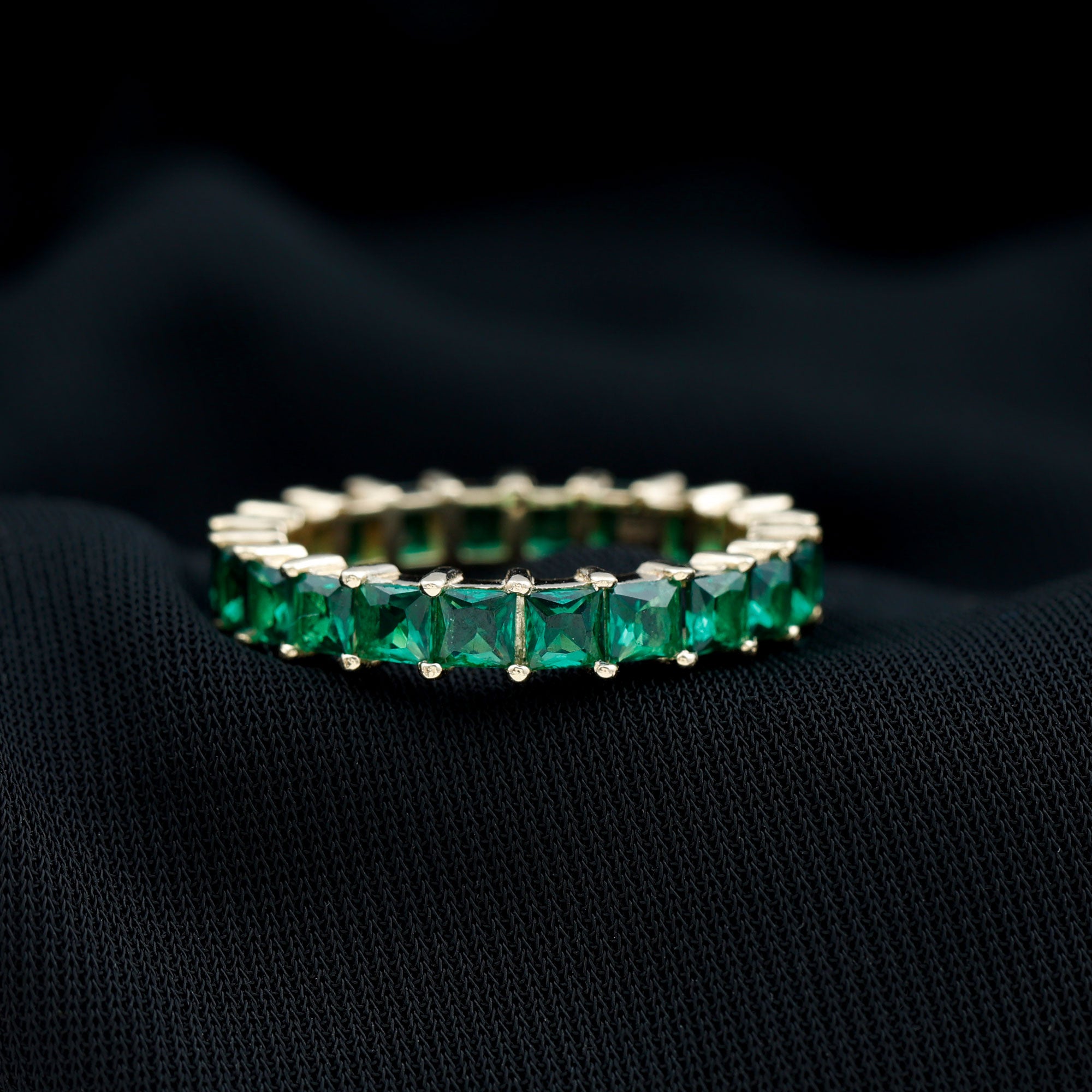 Celebrate everlasting love with this Eternity Wedding Band, a stunning blend of modern elegance and meaningful symbolism. Featuring 3 mm Princess Cut Lab Created Emerald stones in Shared Prong Setting, this Full Eternity Band radiates a vibrant green glow, symbolizing growth, harmony and renewal, perfect for a couple beginning their lifelong journey together. This Lab Grown Emerald Ring is designed to sit comfortably on the finger while adding a touch of bold sophistication. Lab grown for ethical and sustainable brilliance, each Lab Emerald offers exceptional clarity and color, that makes this Lab Emerald Wedding Band a radiant and responsible choice. Whether worn alone for minimalist elegance or paired with an engagement ring for added sparkle, this Princess Cut Wedding Band makes a timeless statement of devotion. Available in various US ring sizes, this Princess Cut Eternity Band ensures the perfect fit for every bride or groom. Rosec Jewels presents this handcrafted Wedding Band, thoughtfully packaged in a Signature Jewelry Box, ready to symbolize your unique love story and cherish forever.