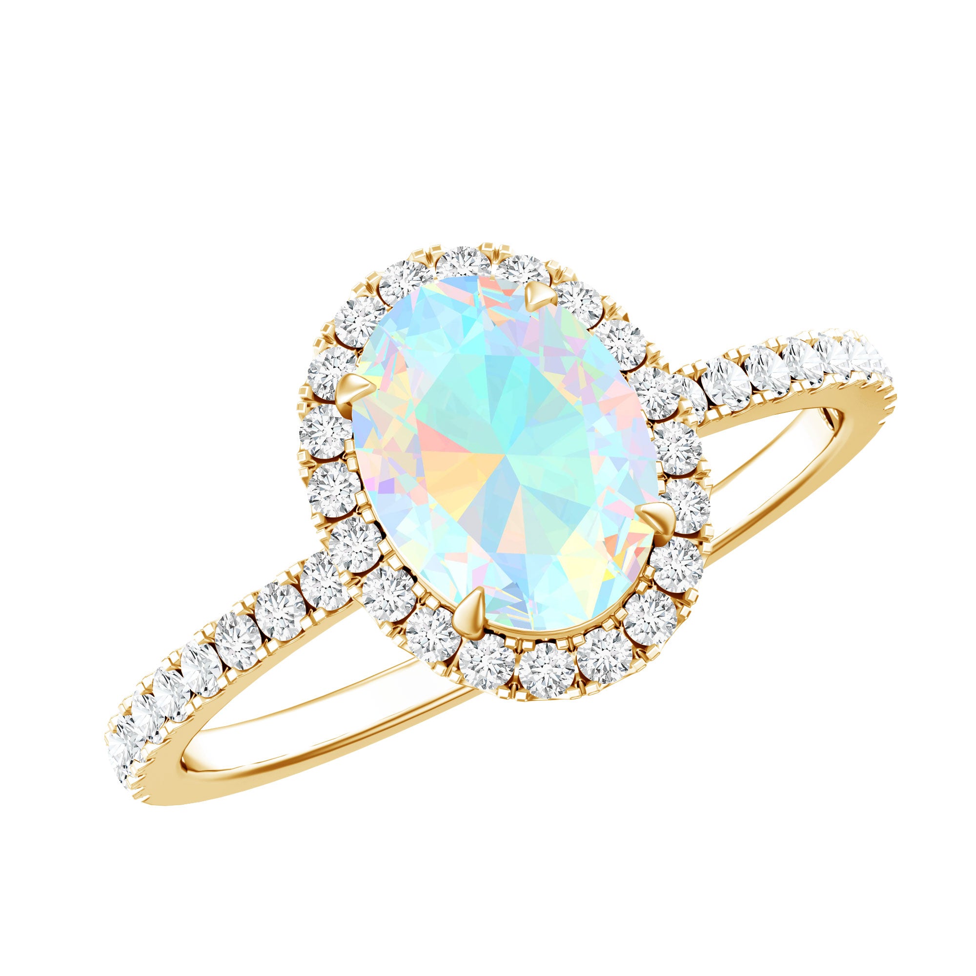 Certified Real 6X8mm Ethiopian Opal Oval Engagement Ring with Diamond Halo
