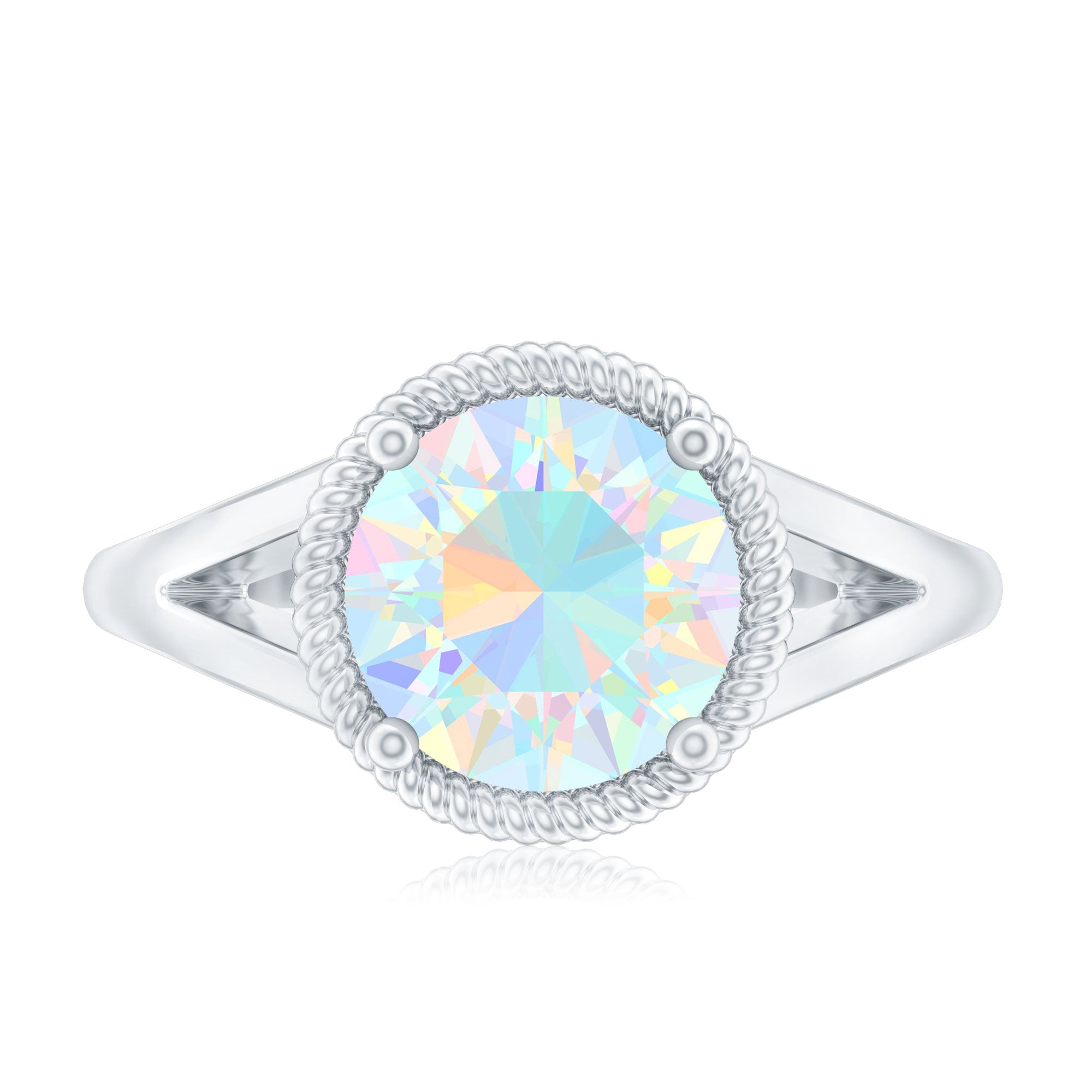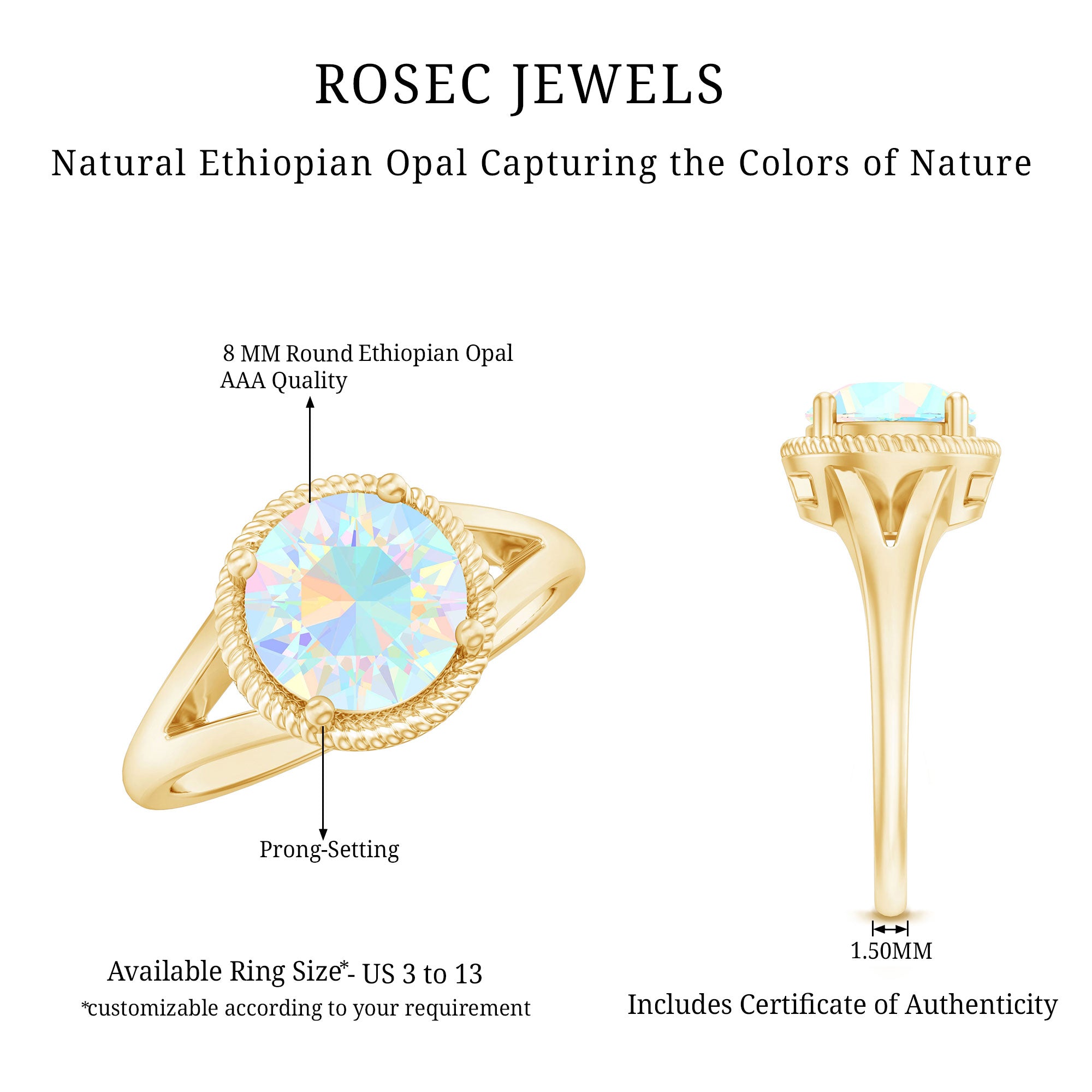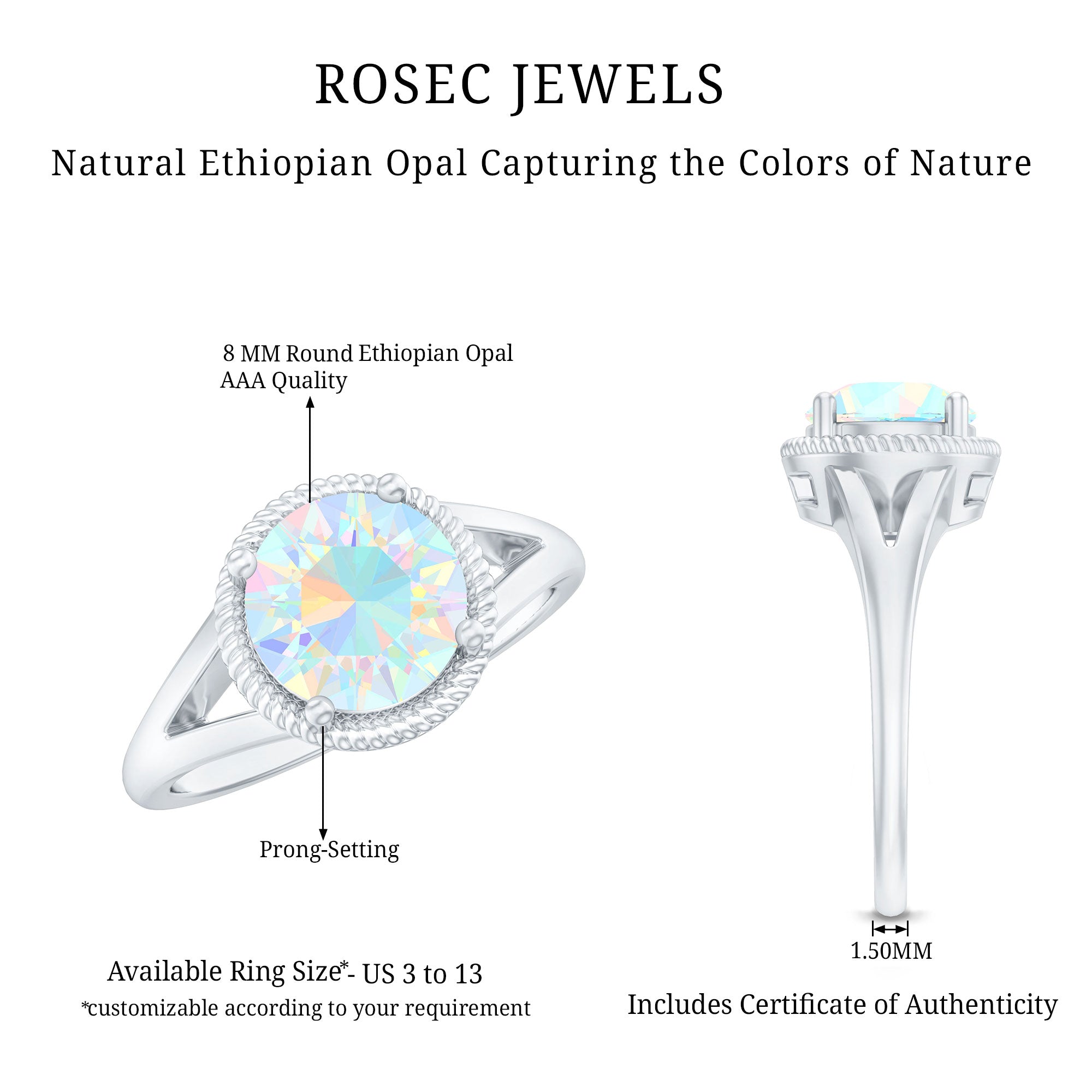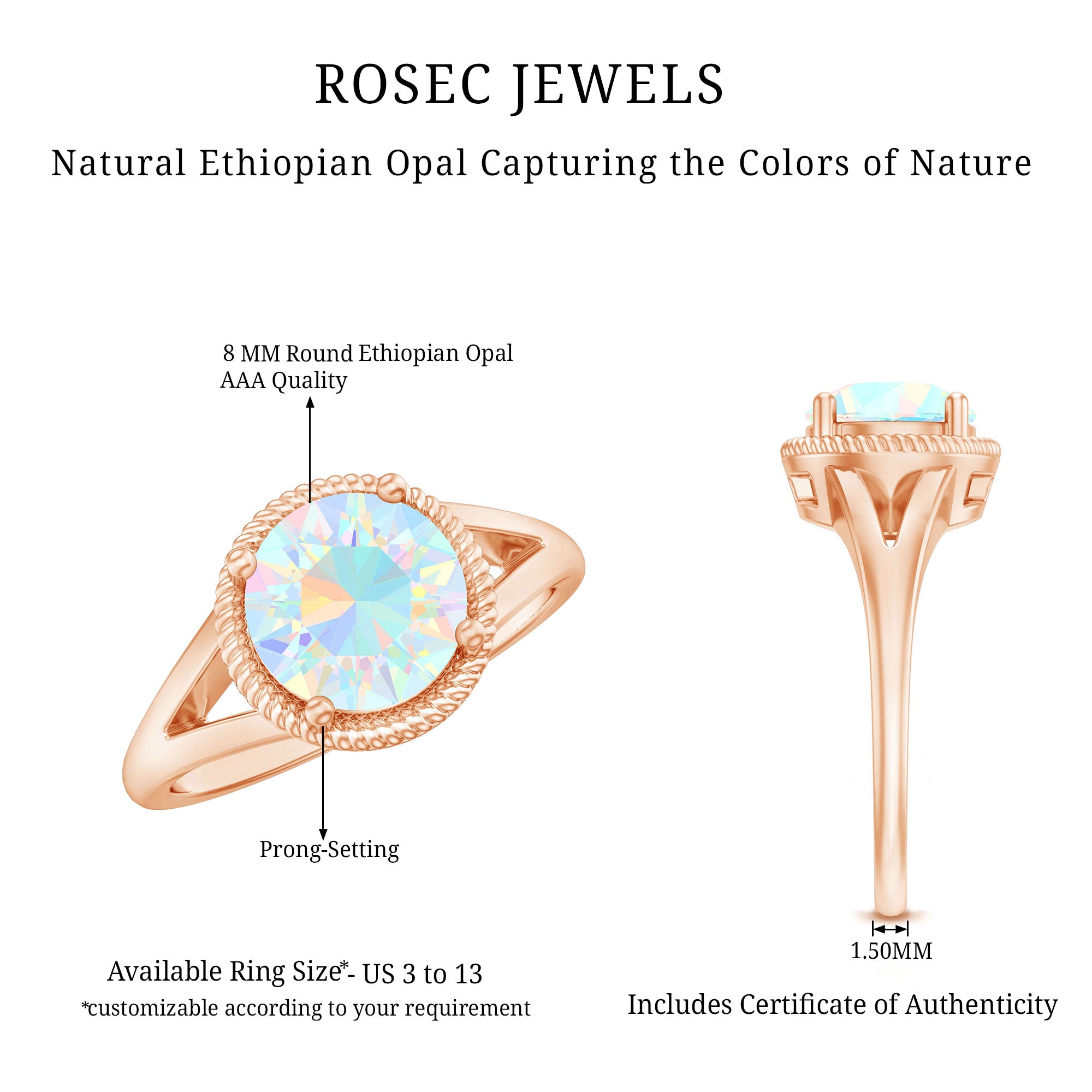 Certified Real 8 mm Round Ethiopian Opal Split Shank Engagement Ring with Twisted Rope