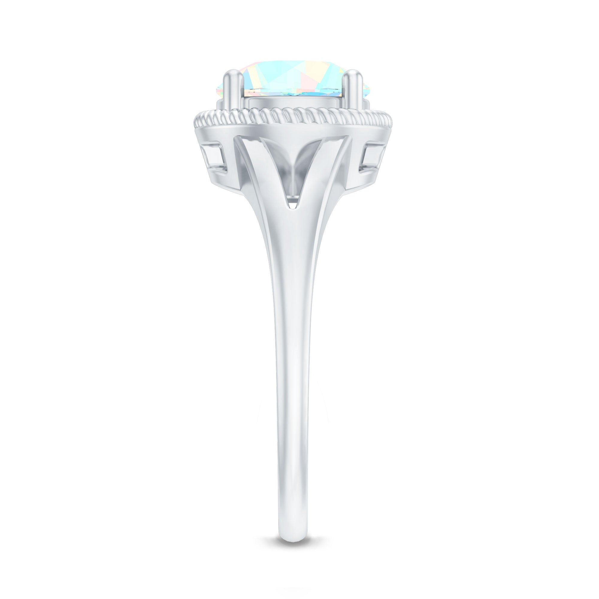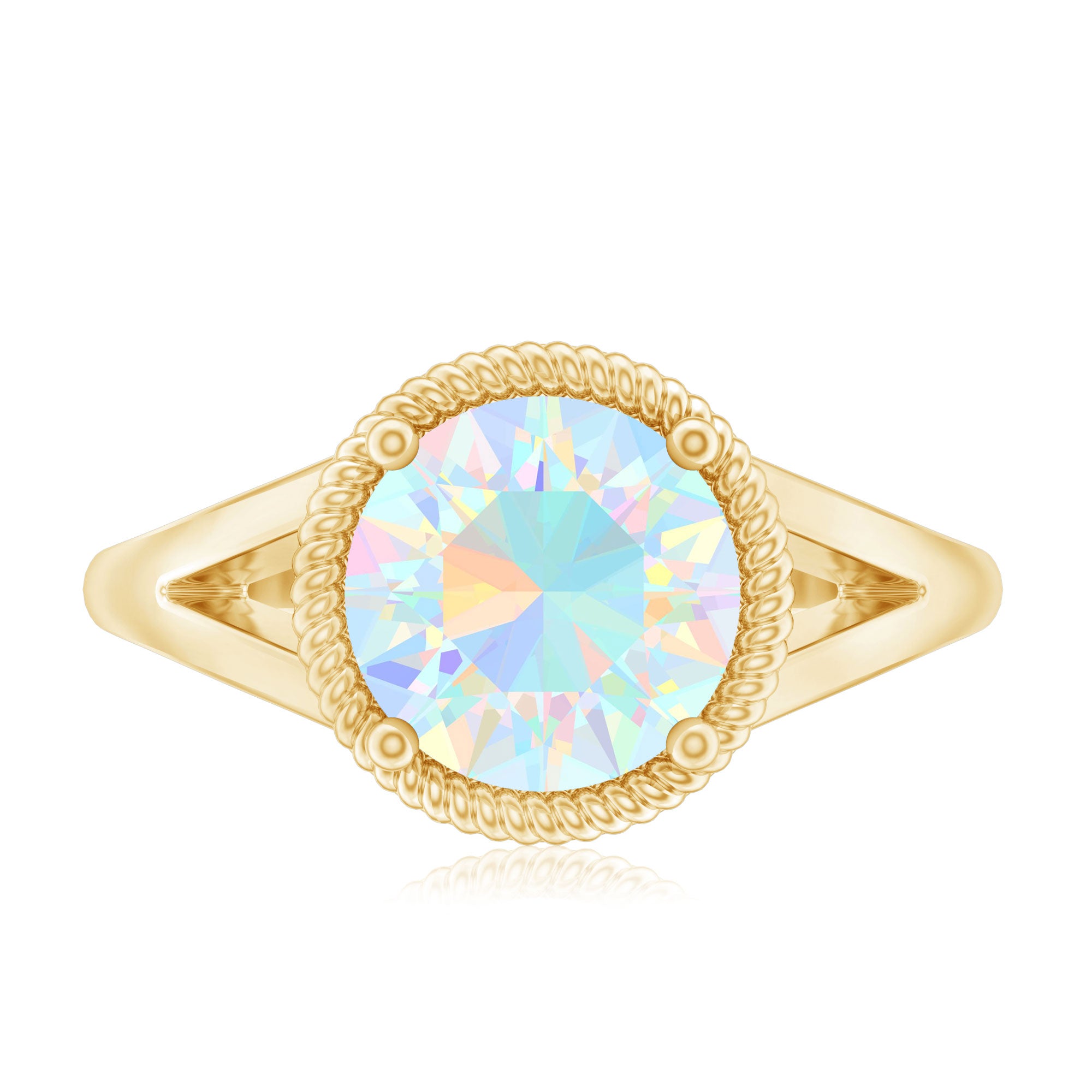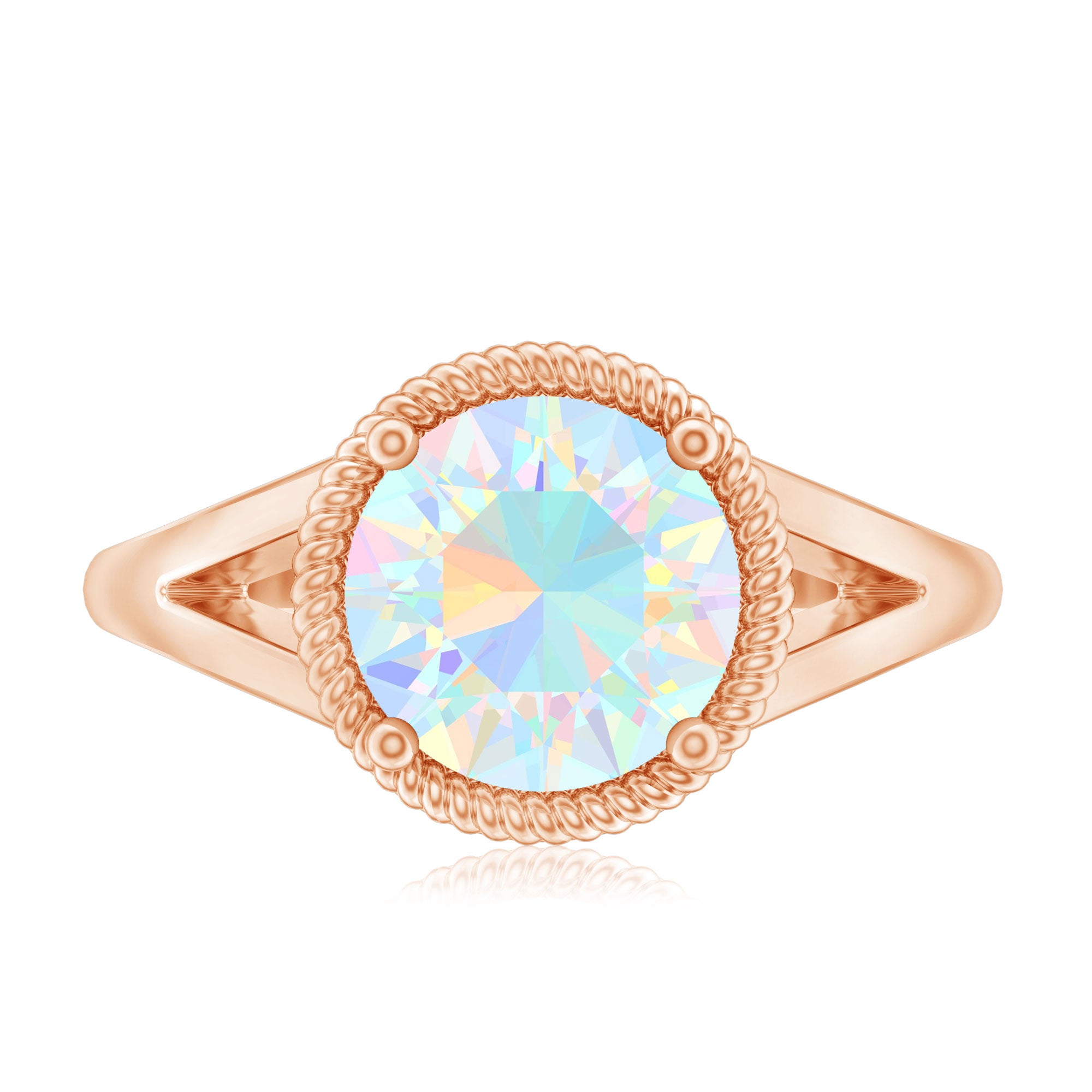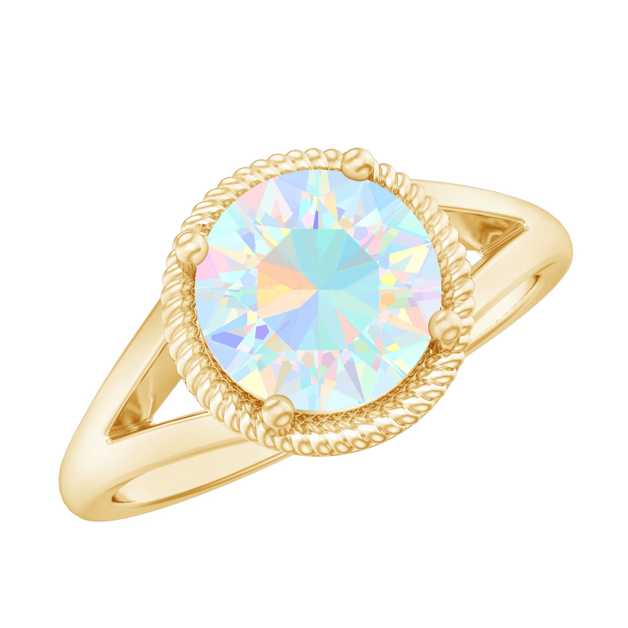 Certified Real 8 mm Round Ethiopian Opal Split Shank Engagement Ring with Twisted Rope