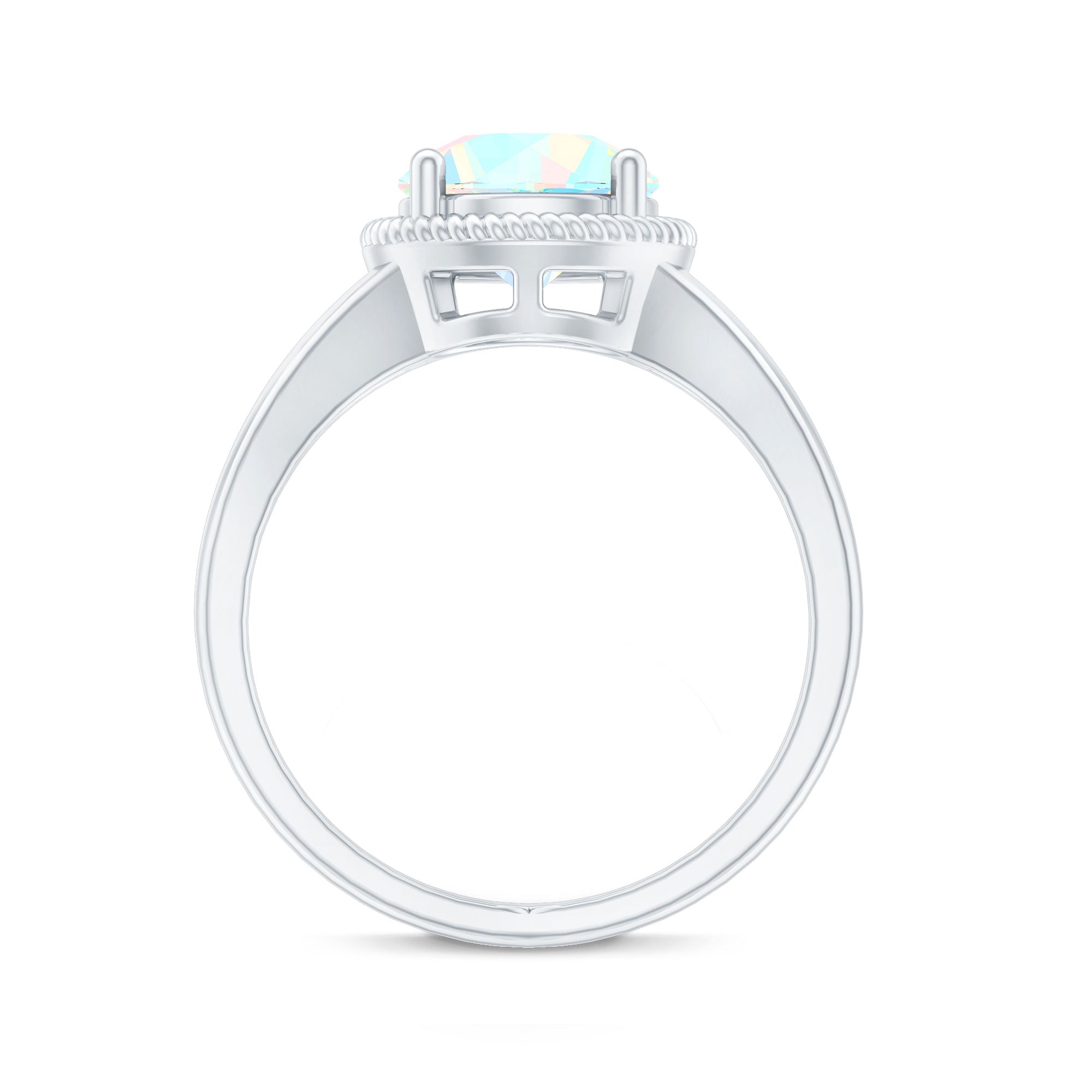 This Ethiopian Opal Engagement Ring is the epitome of romance and artistry, a piece that will forever symbolize the unique bond you share. The center holds an 8 mm Round Shape Ethiopian Opal, glowing with an ethereal blend of pastel colors, capturing the essence of a love that is constantly evolving. Set within a beautifully Twisted Rope frame, the Opal is surrounded by intricate detailing. The Split Shank design adds a modern twist, gracefully curving around the finger like two souls intertwining, while the twisted rope brings a touch of vintage charm. This Split Shank Engagement Ring is a symbol of your eternal love, woven together with both strength and beauty. Presented in a signature jewelry box and available in various sizes, this Opal Round Engagement Ring is ready to mark the beginning of your forever. Whether you are asking for a lifetime together or celebrating a love that has already stood the test of time, this October Birthstone Engagement Ring is sure to take her breath away, capturing the magic of every moment you have shared and those still to come.