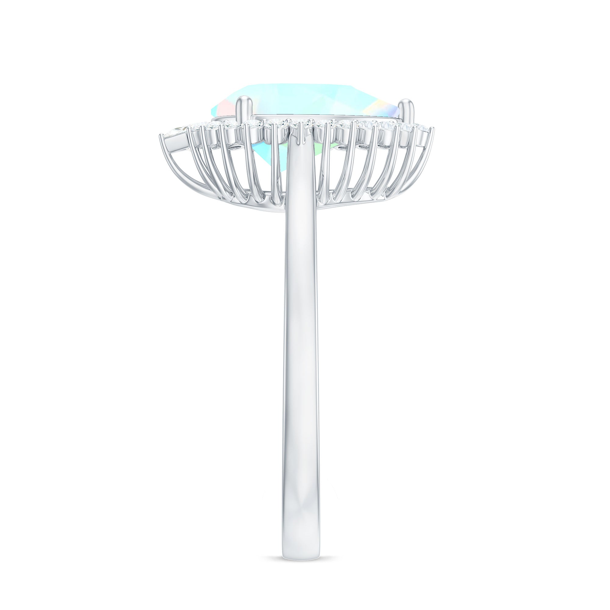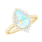 Certified Real 8X10mm Ethiopian Rainbow Opal Teardrop Engagement Ring with Diamond Halo