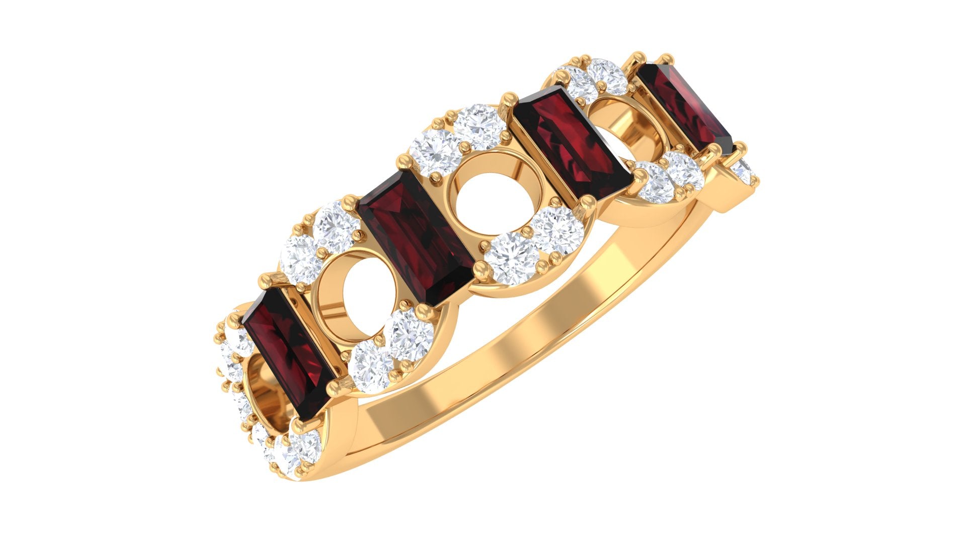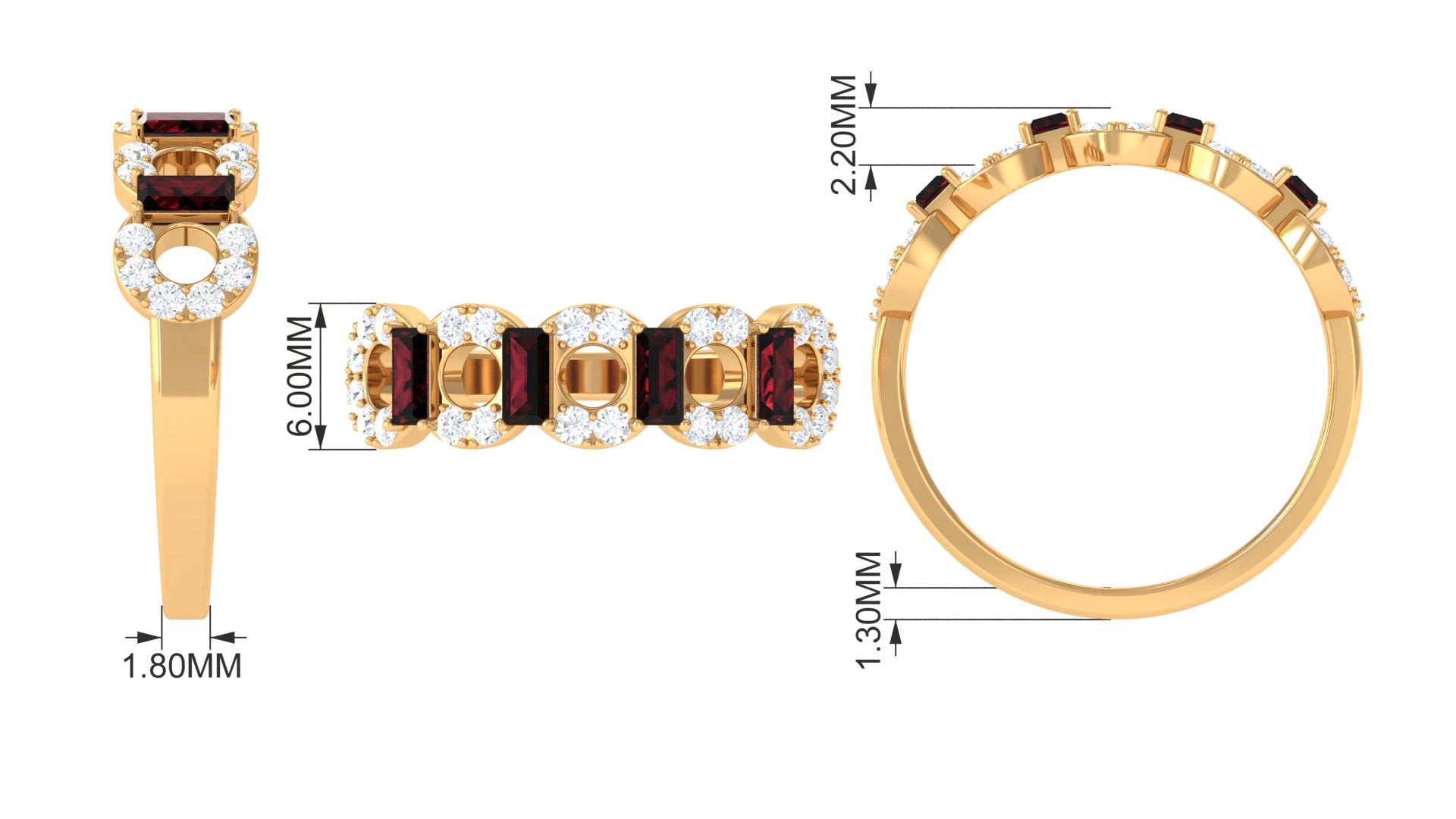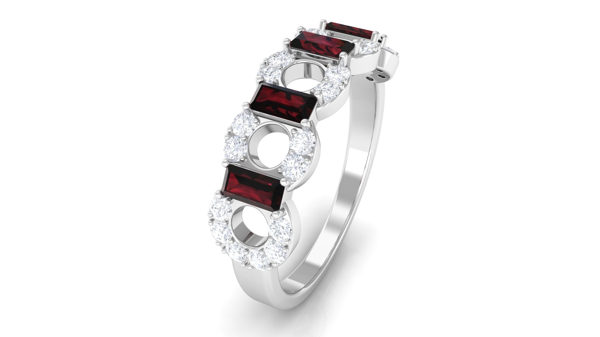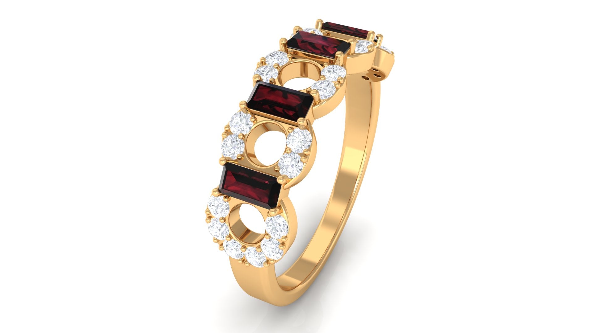 Certified Real Baguette Garnet Half Eternity Band with Diamond