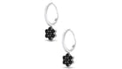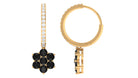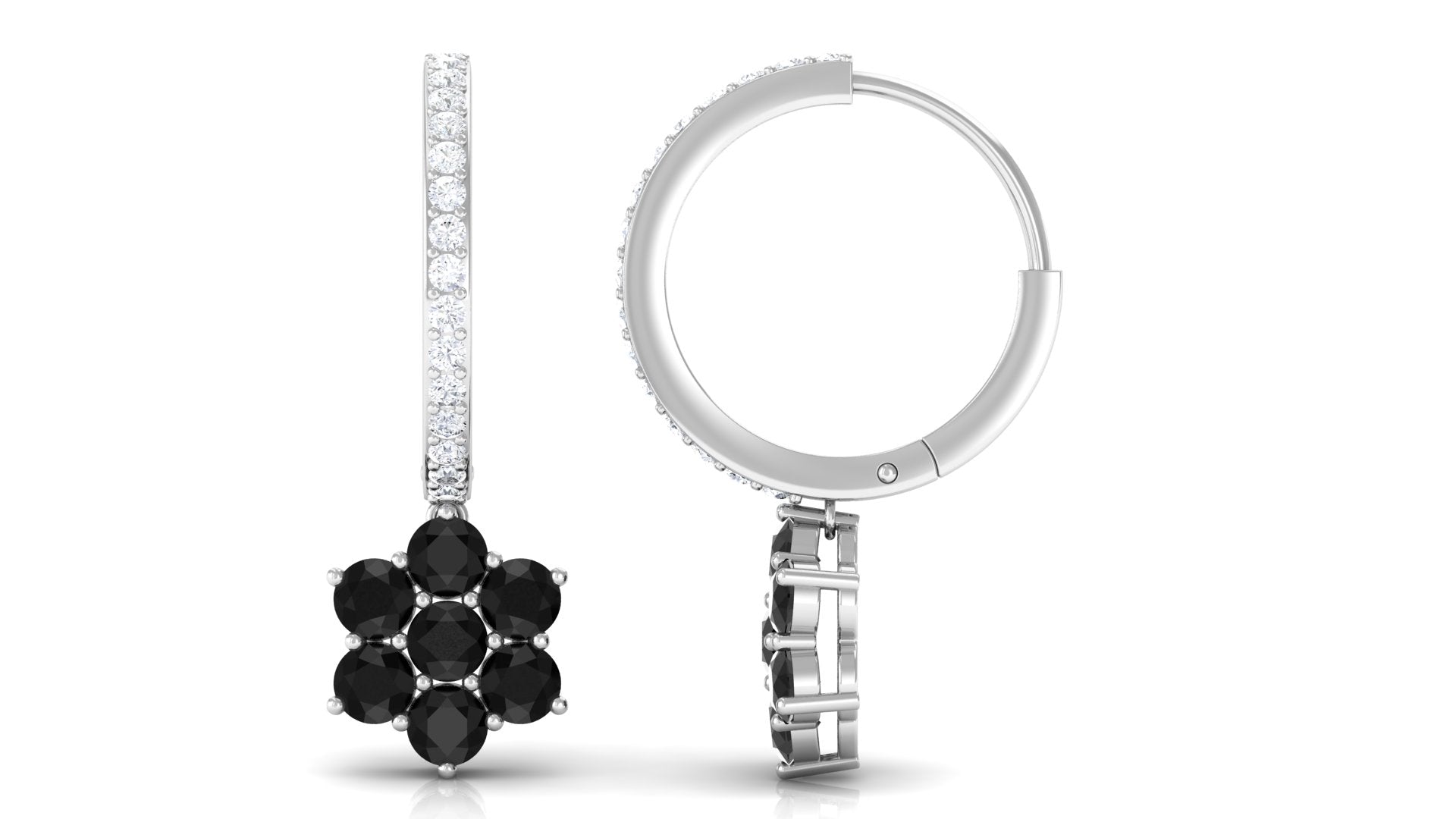 Certified Real Black Onyx Flower Drop Hoop Earrings with Diamonds