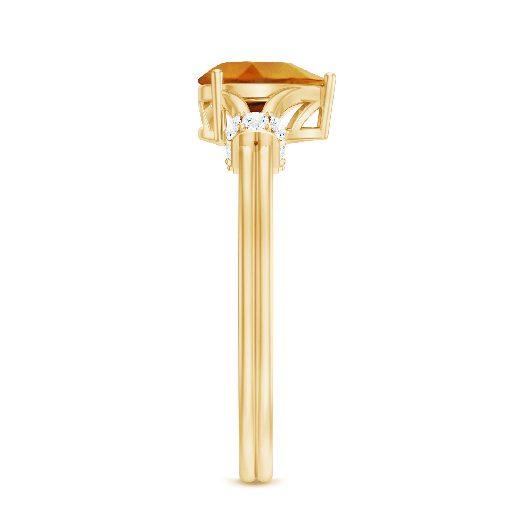 Make her a fan of your selection by presenting this Pear Shaped Engagement Ring, designed to capture hearts at first glance. At the center shines a 5X7 mm Pear Shape Citrine set in Prong Setting, glowing with a rich golden warmth that reflects happiness, passion and a love full of promise. The Split Shank gently opens beneath the center stone, creating a graceful frame that feels modern yet deeply romantic. At the ends of the shank, shimmering Diamond stones are carefully set, adding a soft sparkle that draws the eye and elevates the entire design. This Citrine Engagement Ring is perfect for someone who loves refined beauty with a touch of brilliance and meaning. The flowing shape of the pear stone symbolizes a journey shared, growing stronger with every step. Presented in a signature jewelry box and available in various ring sizes, this Citrine Diamond Ring is ready for a moment that will be remembered forever. This Split Shank Engagement Ring is a heartfelt expression of eternal love, chosen with care and given with devotion.