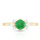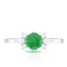 Certified Real Cushion Cut Emerald Engagement Ring with Diamond Trio