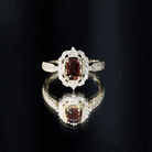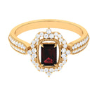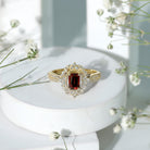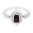 Certified Real Emerald Cut Garnet Retro Engagement Ring with Diamond
